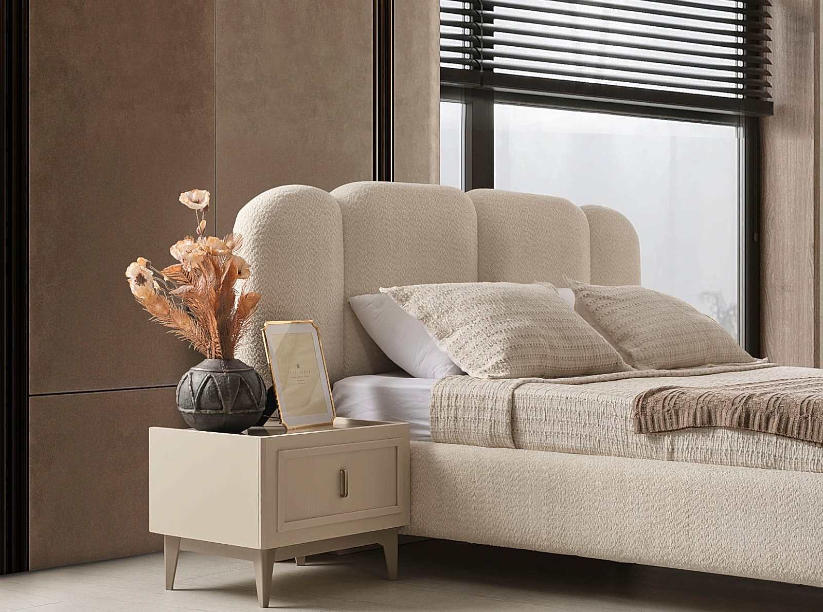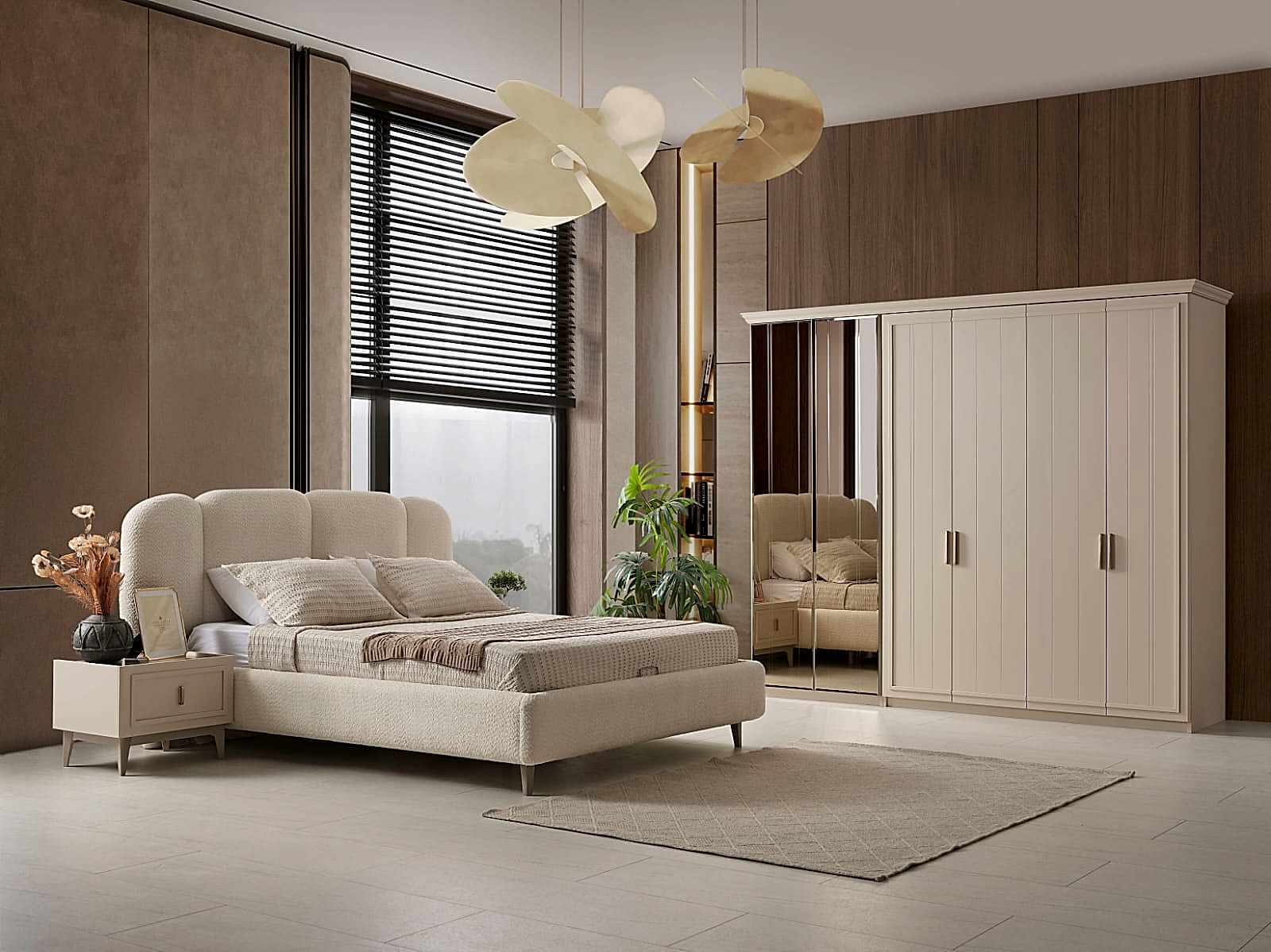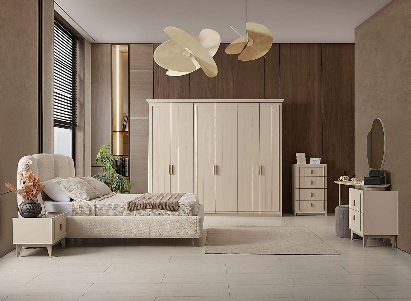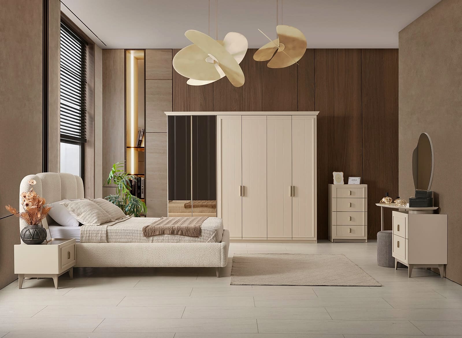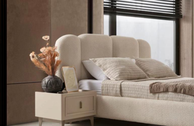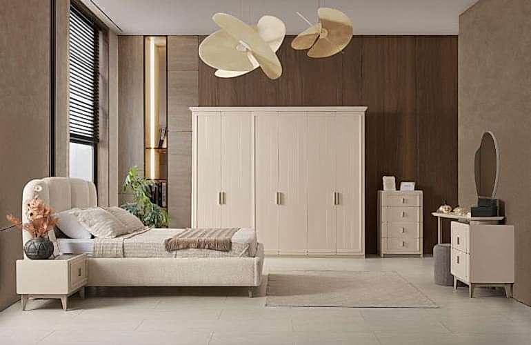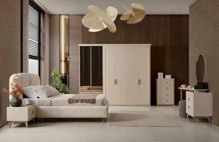 YATAK ODASI TAKIMI: Karyola, karyola başucu, 2 adet komodin, gardorop, şifonyer, şifonyer aynasından oluşmaktadır.