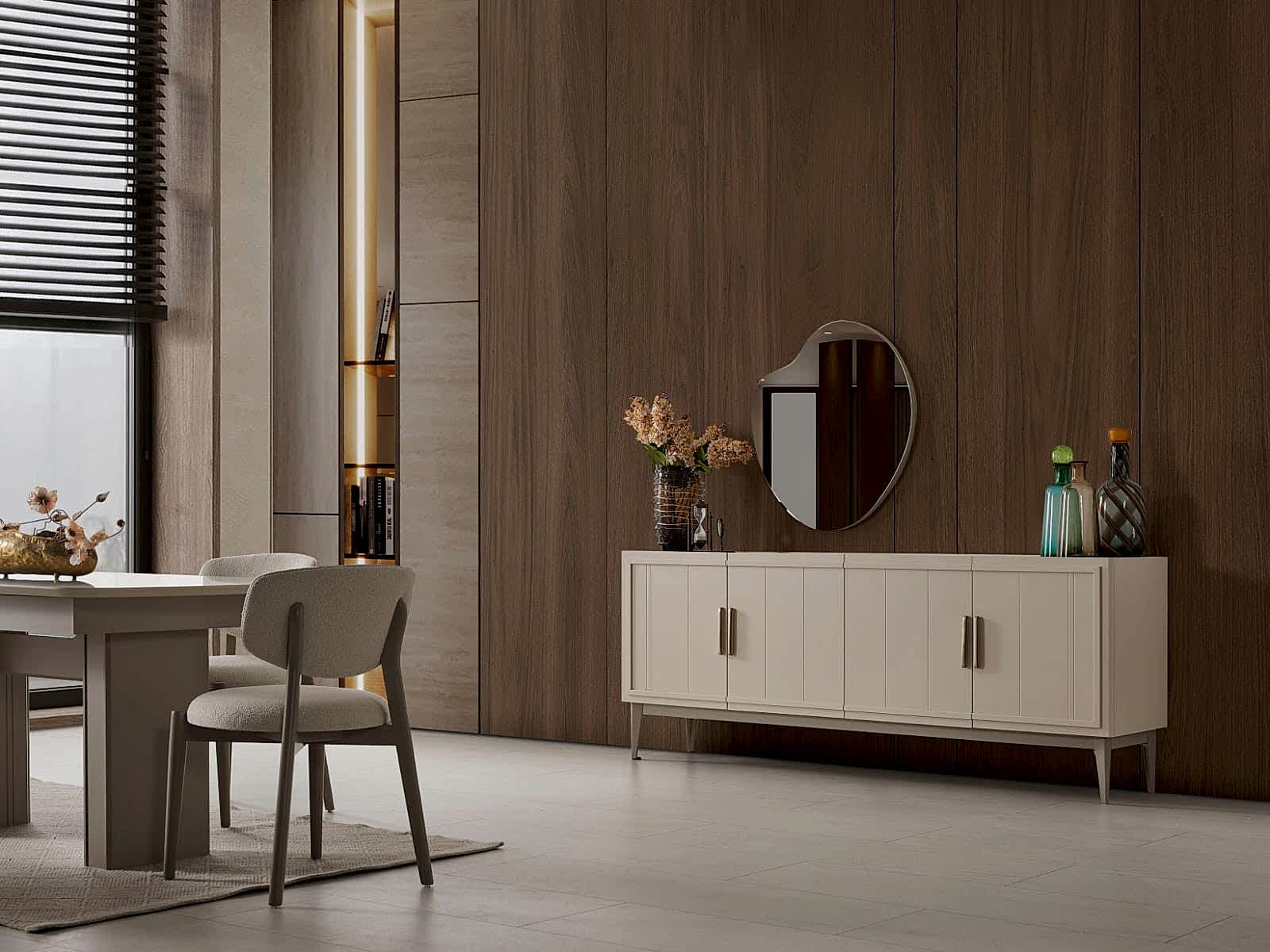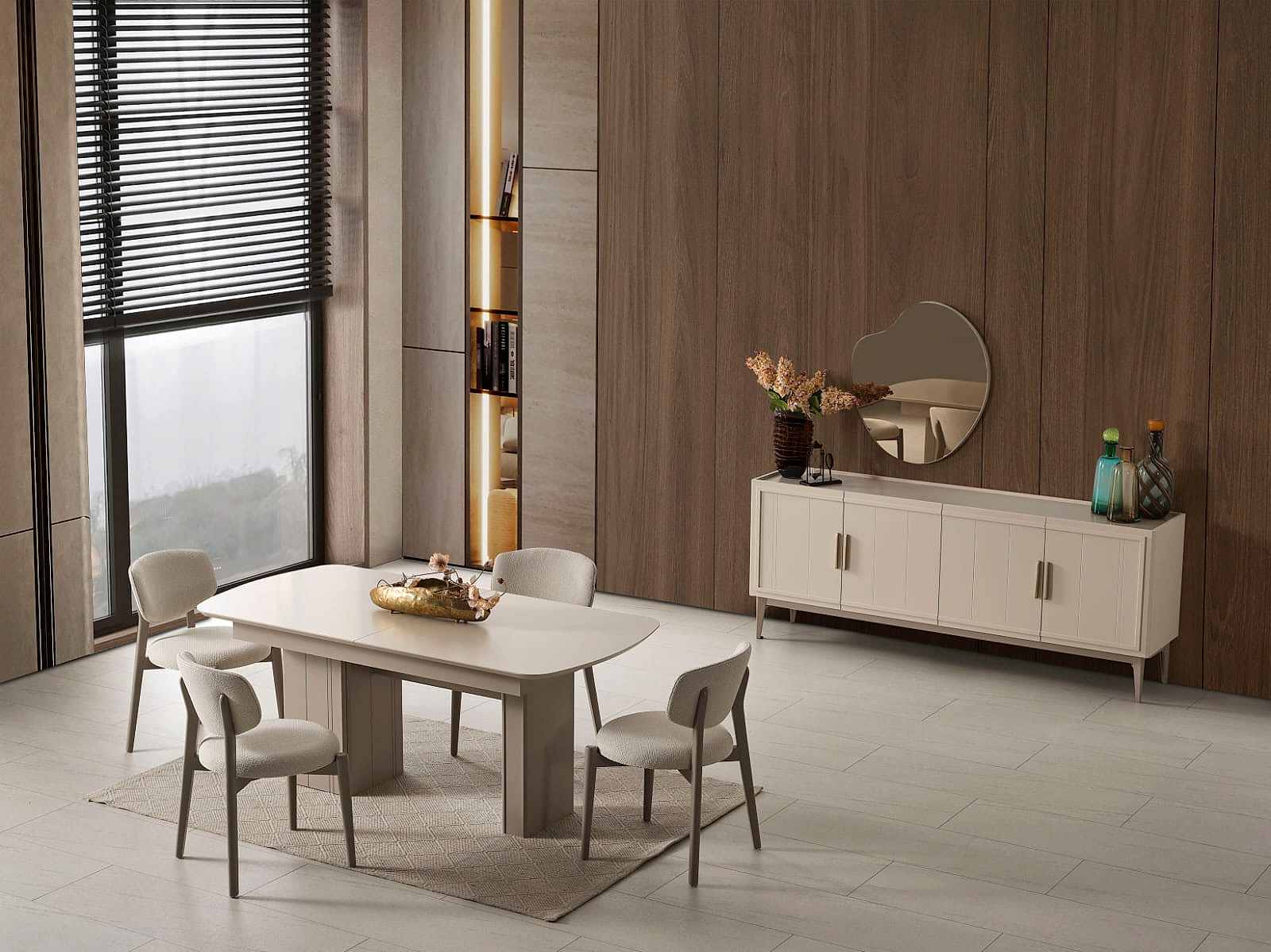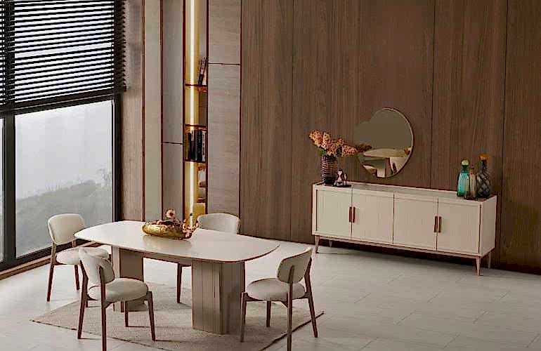 YEMEK ODASI TAKIMI: Konsol ,konsol aynası, yemek masası ve 4 adet elmas sandalyelidir.