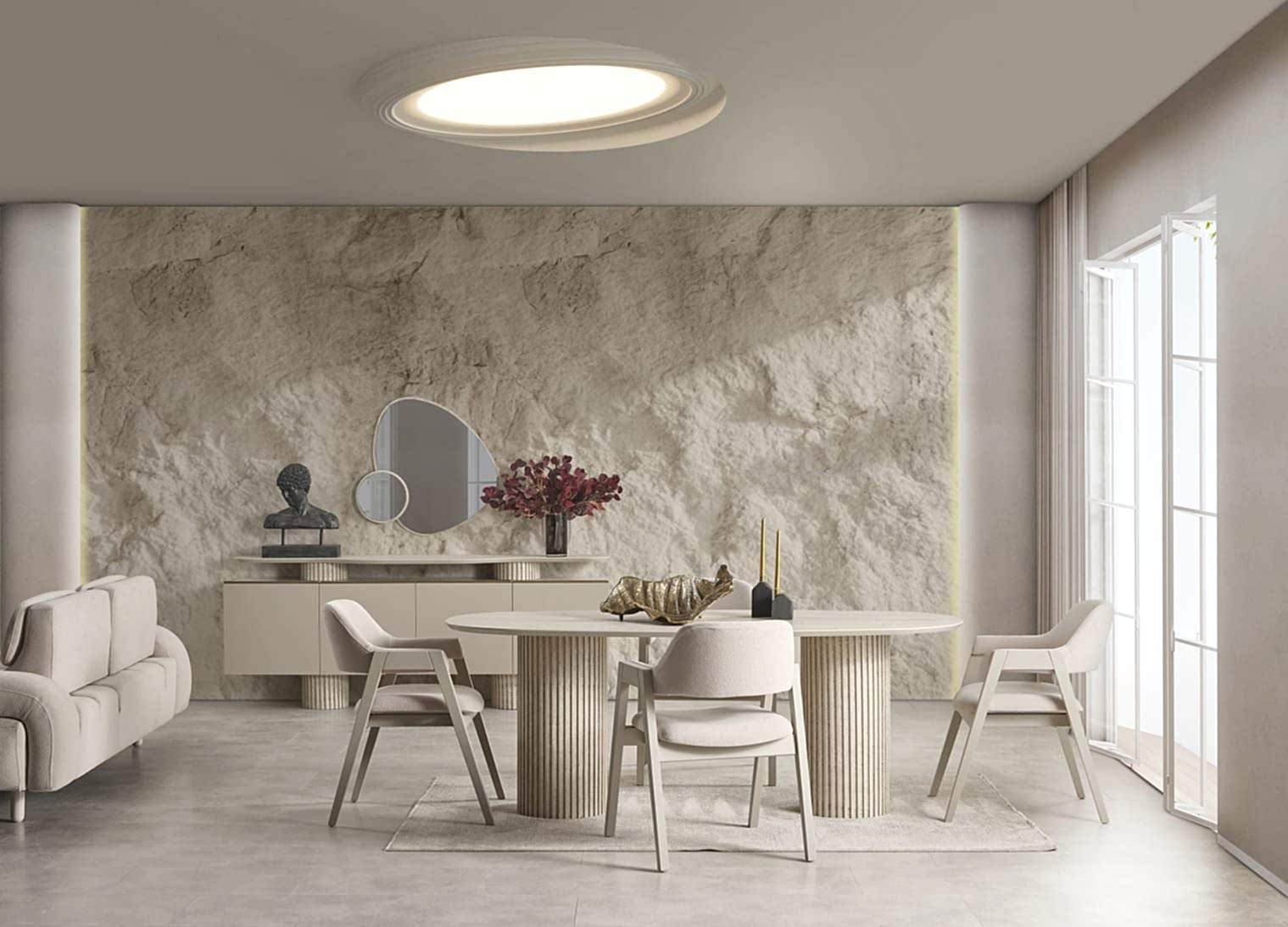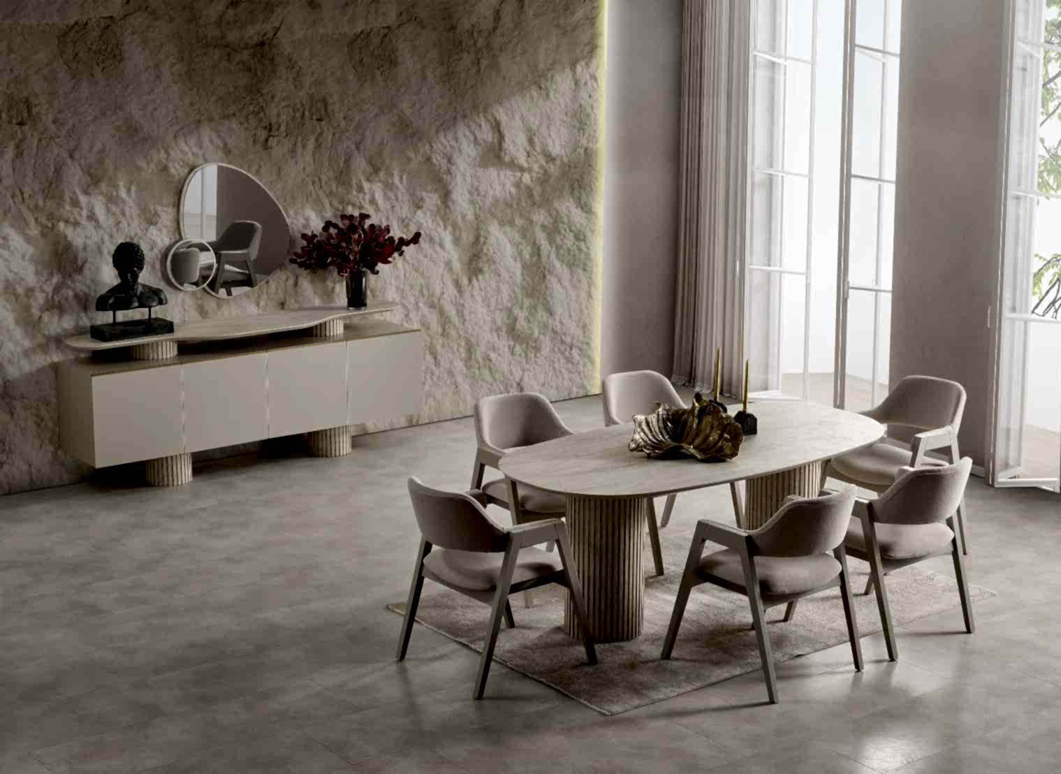 YEMEK ODASI TAKIMI: Konsol ,konsol aynası, yemek masası ve 4 adet baleria sandalyelidir.