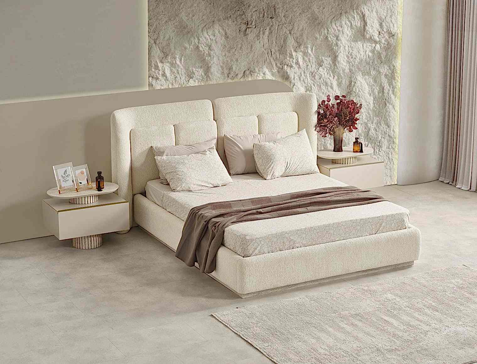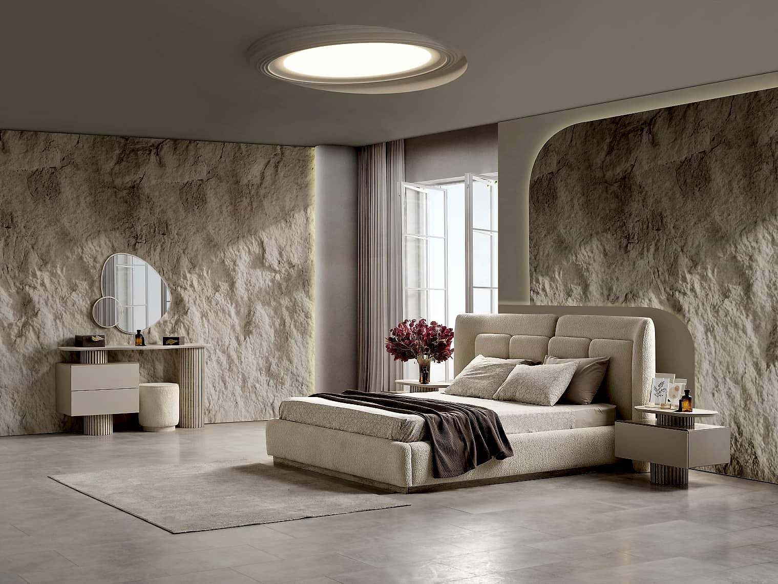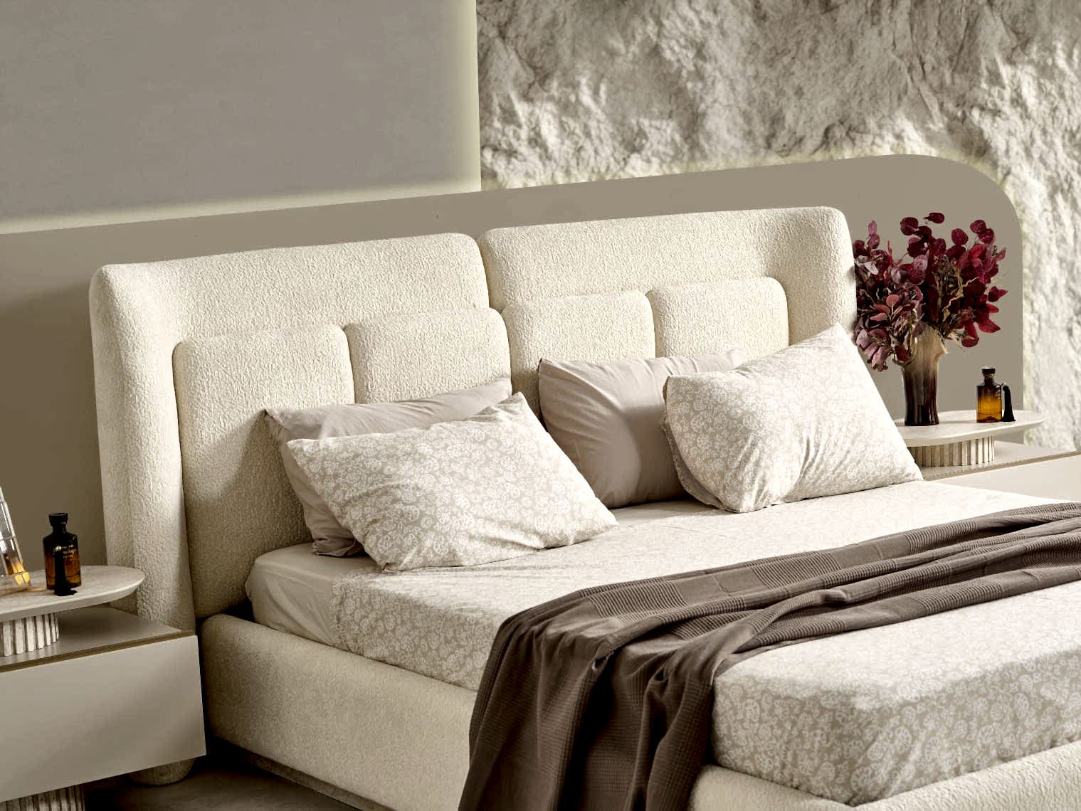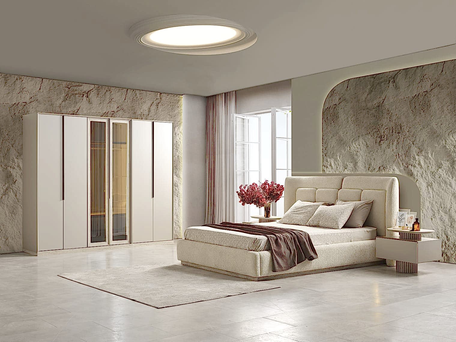 YATAK ODASI TAKIMI: Karyola, karyola başucu, 2 adet komodin, gardorop, şifonyer, şifonyer aynasından oluşmaktadır.