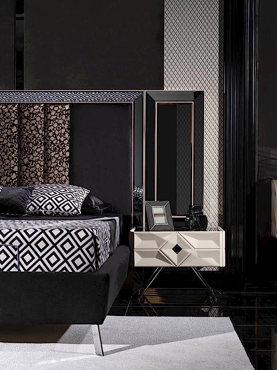 YATAK ODASI TAKIMI: Karyola, karyola başucu, 2 adet komodin, gardorop, şifonyer, şifonyer aynasından oluşmaktadır.