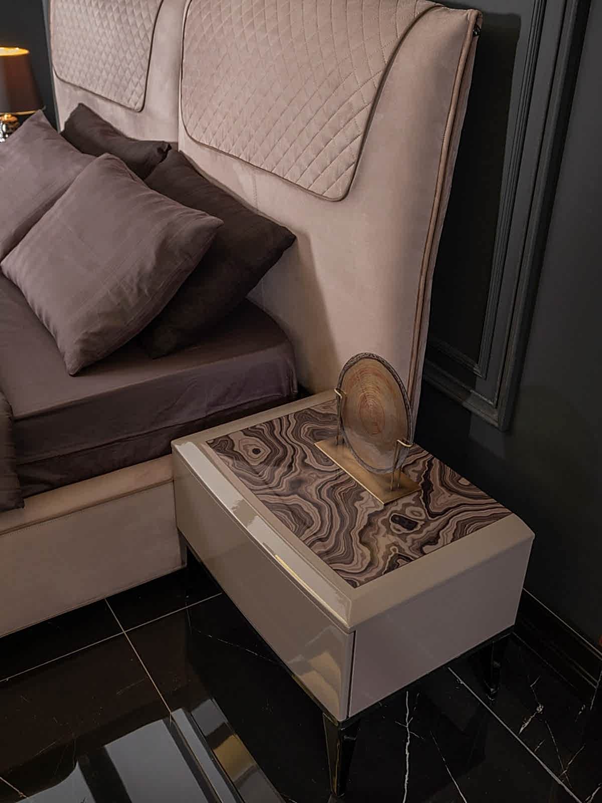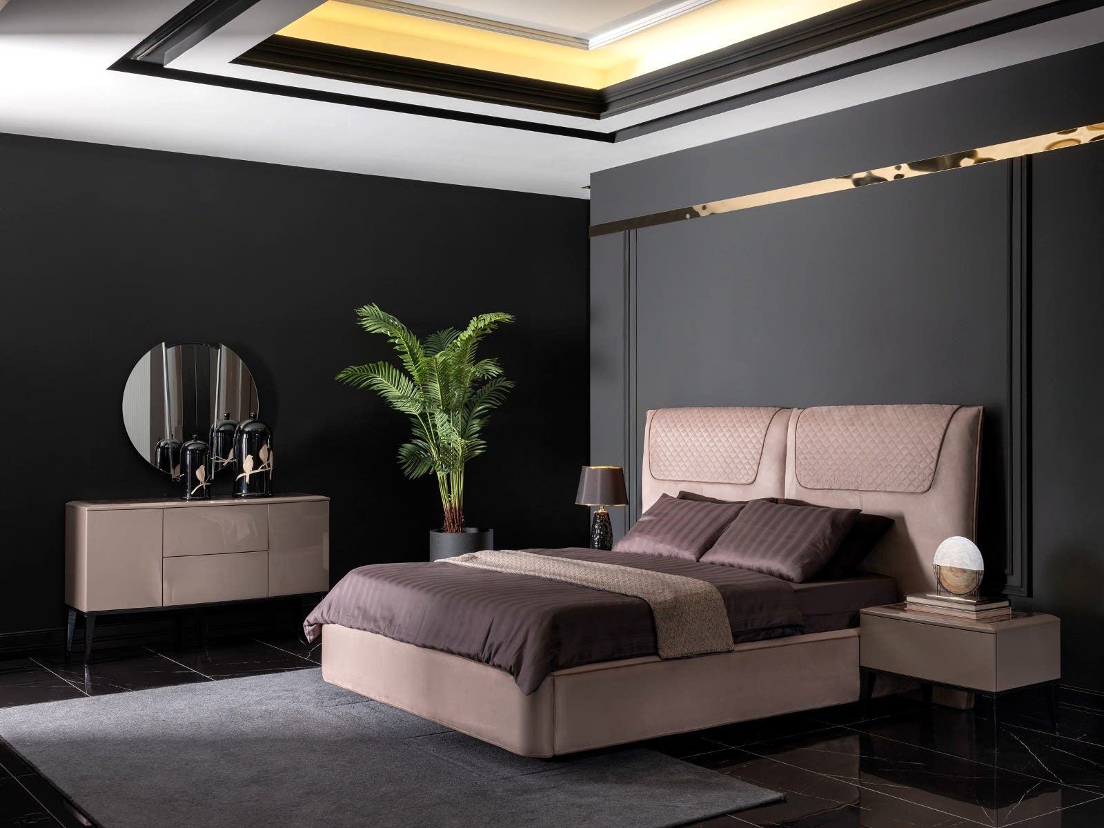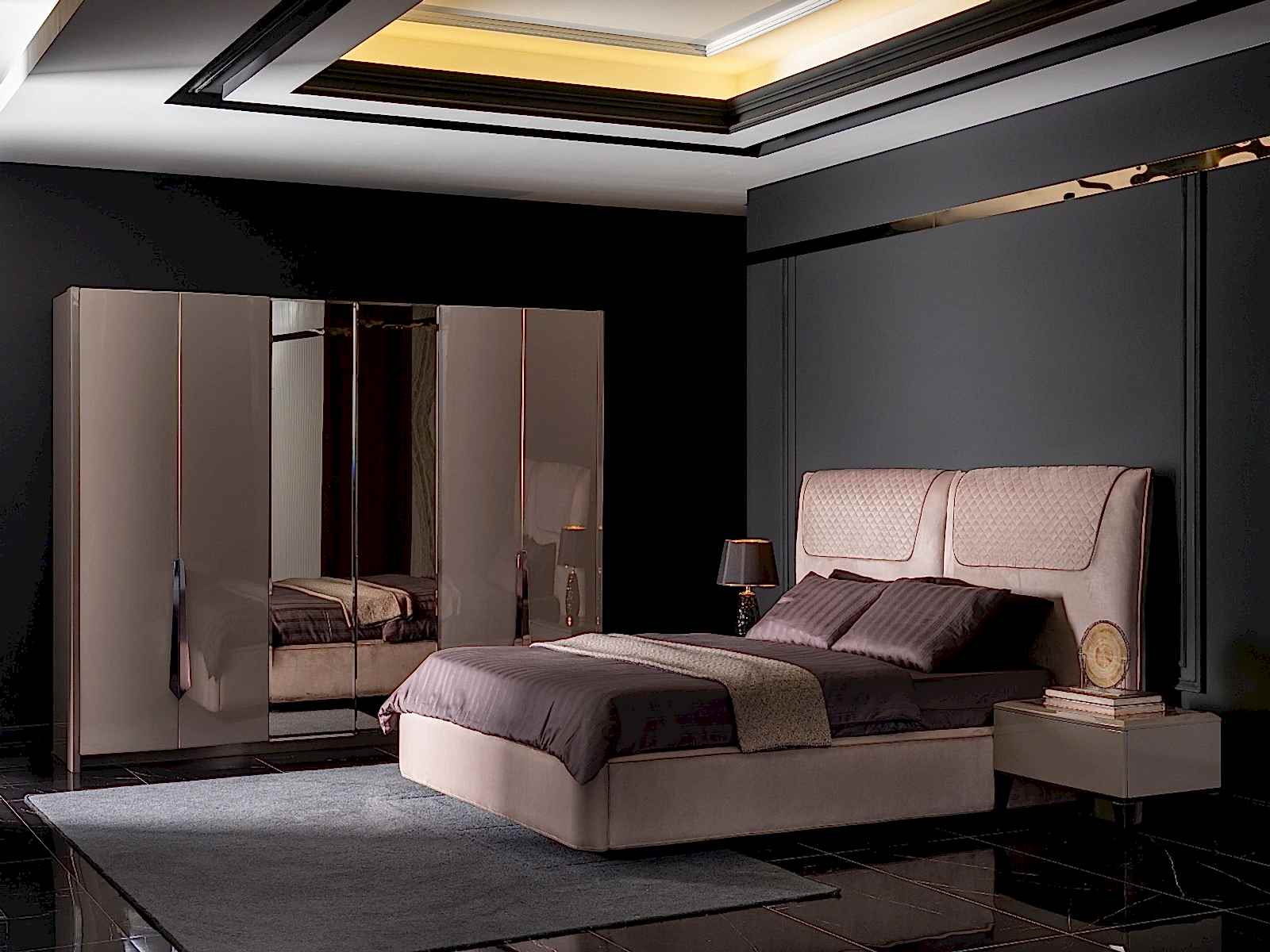 YATAK ODASI TAKIMI: Karyola, karyola başucu, 2 adet komodin, gardorop, şifonyer, şifonyer aynasından oluşmaktadır.