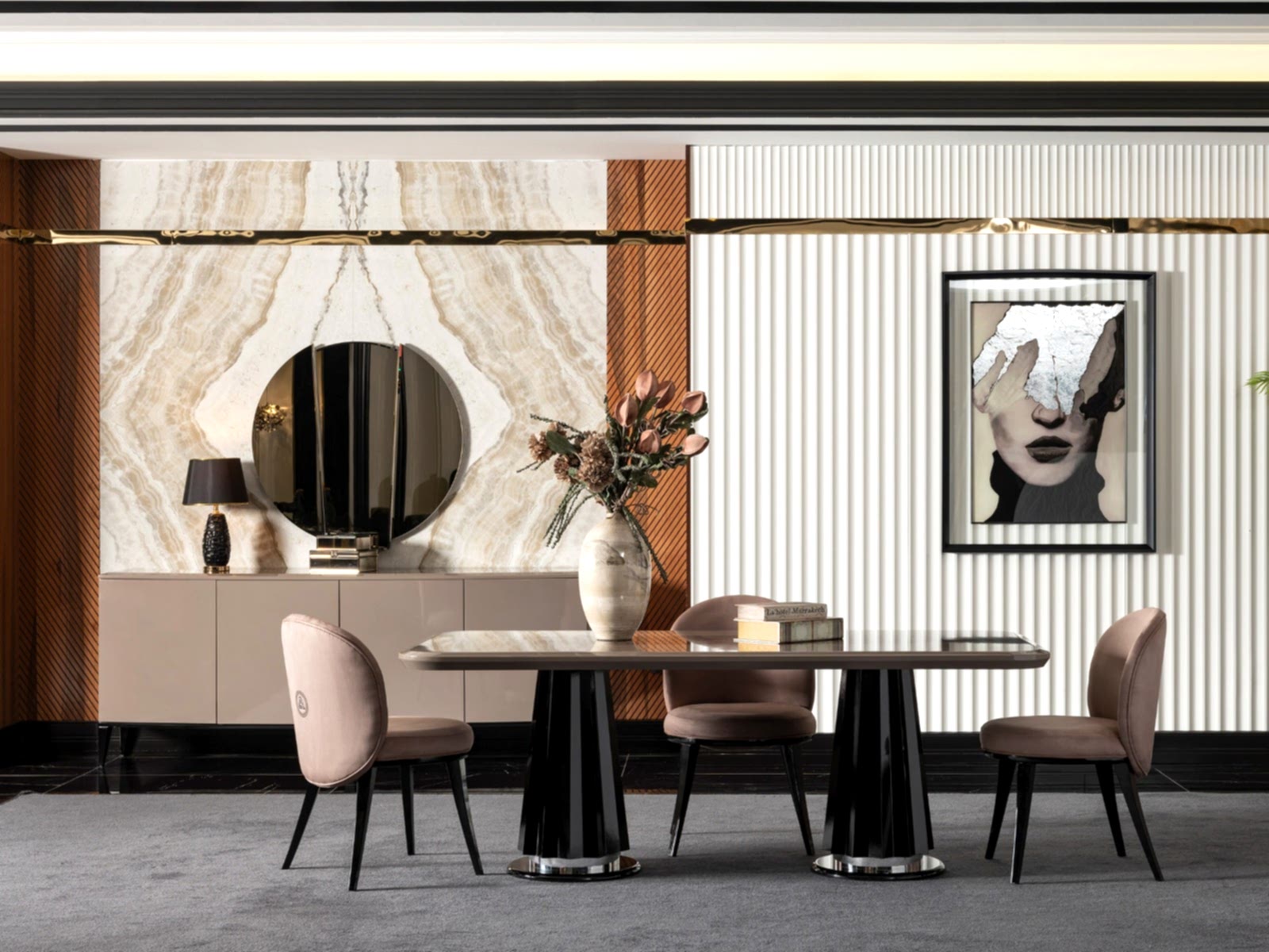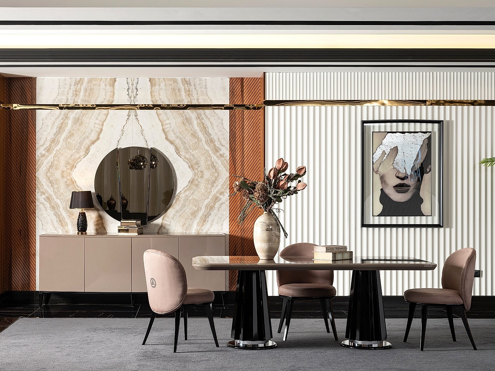 YEMEK ODASI TAKIMI: Konsol ,konsol aynası, yemek masası ve 6 adet sandalyelidir.
