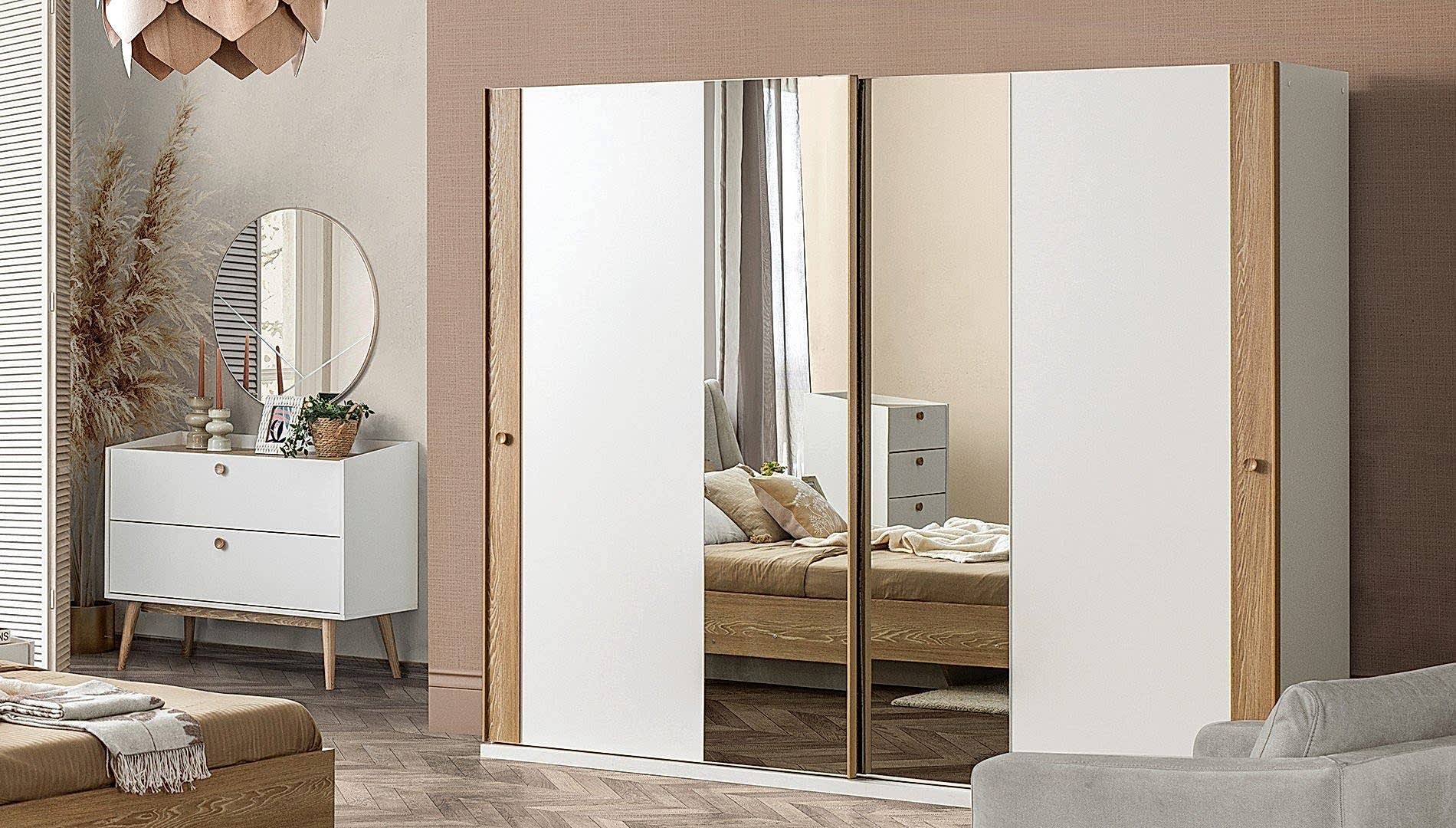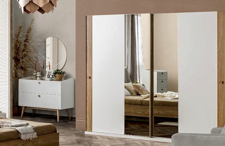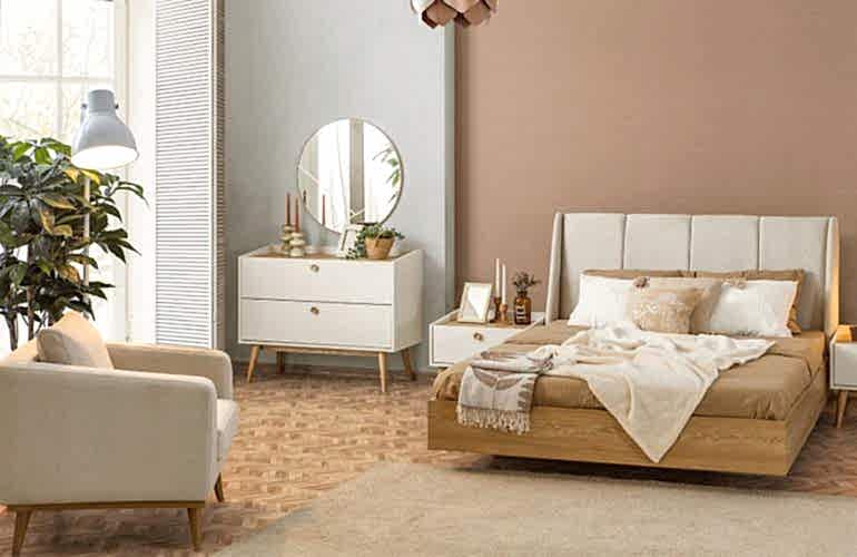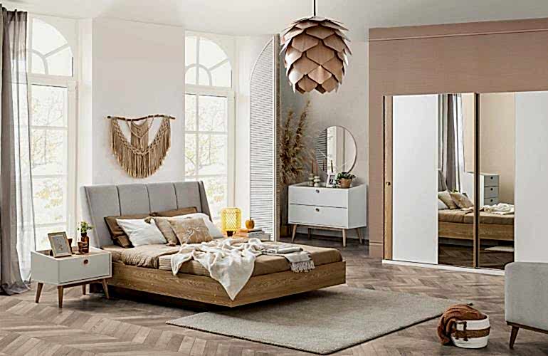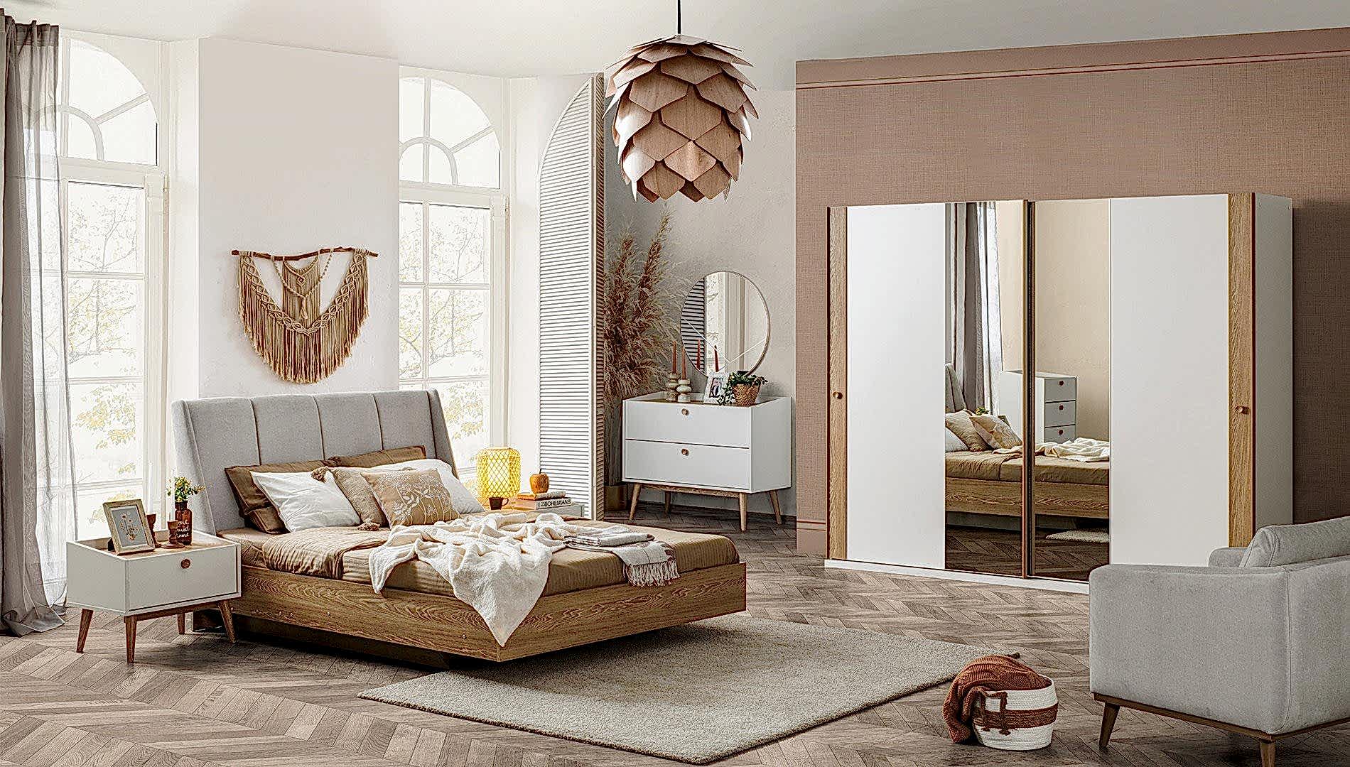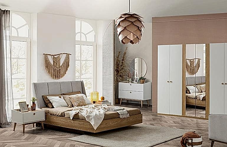 YATAK ODASI TAKIMI: Karyola, karyola başucu, 2 adet komodin, gardorop, şifonyer, şifonyer aynasından oluşmaktadır.
