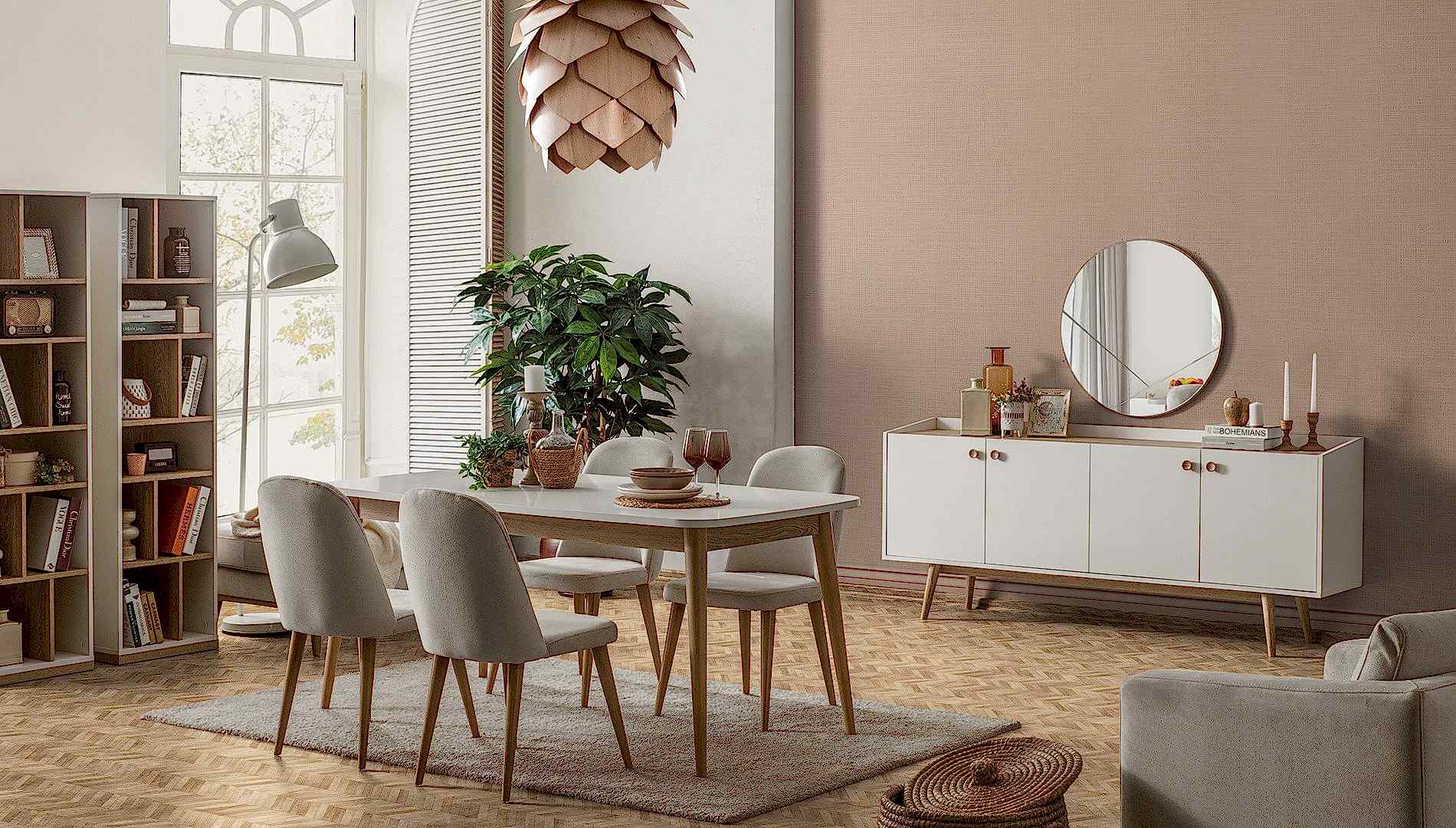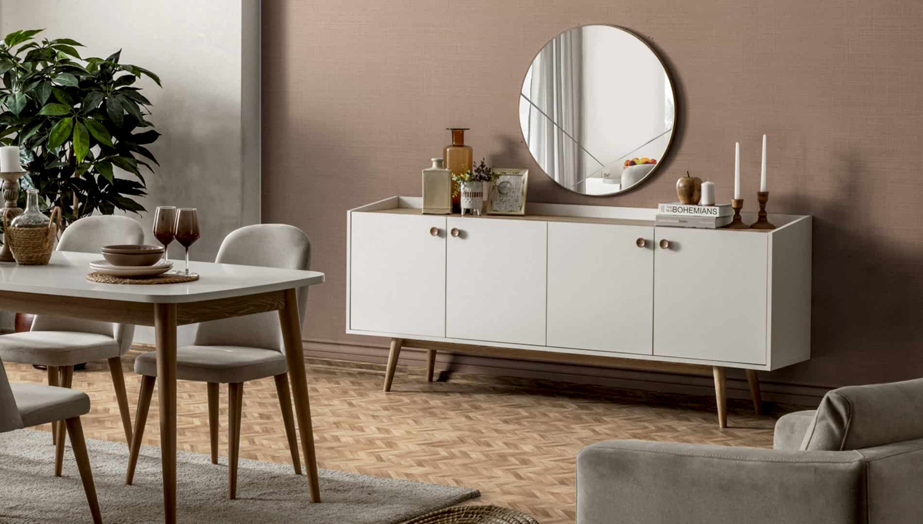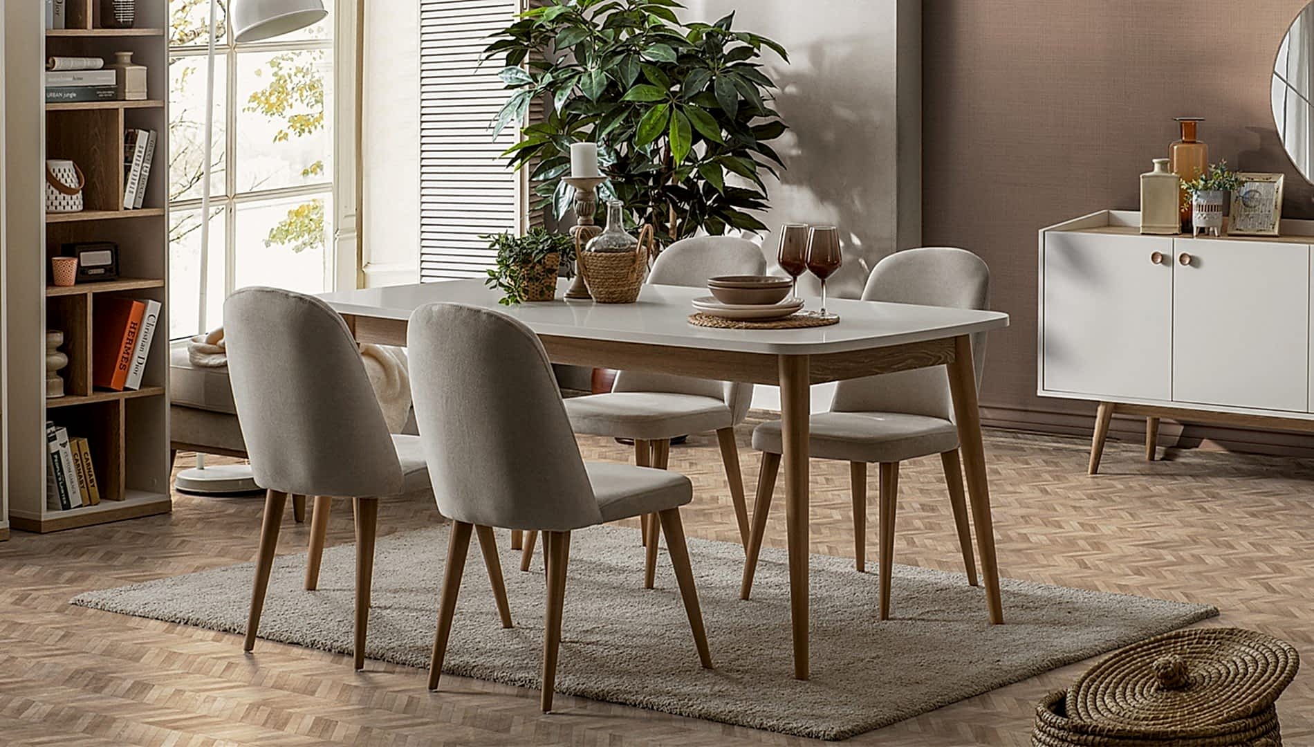YEMEK ODASI TAKIMI: Konsol ,konsol aynası, yemek masası ve 4 adet elmas sandalyelidir.