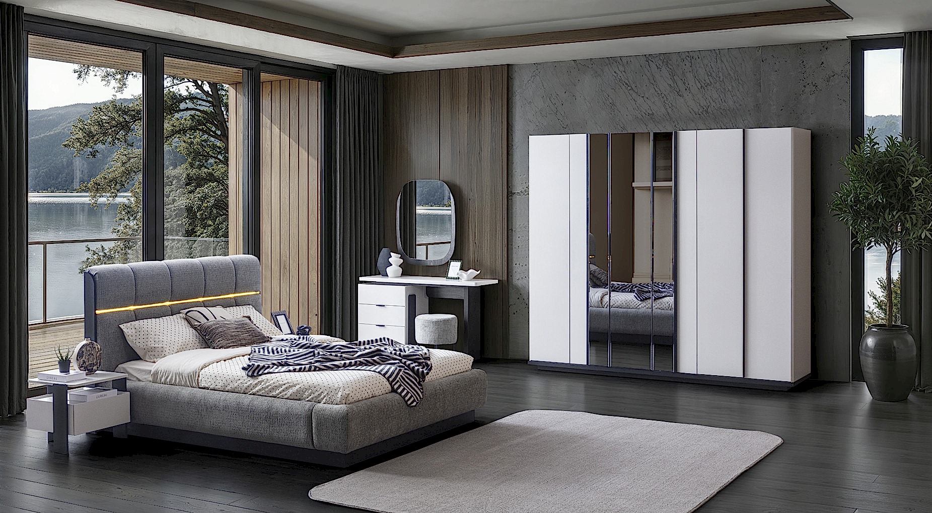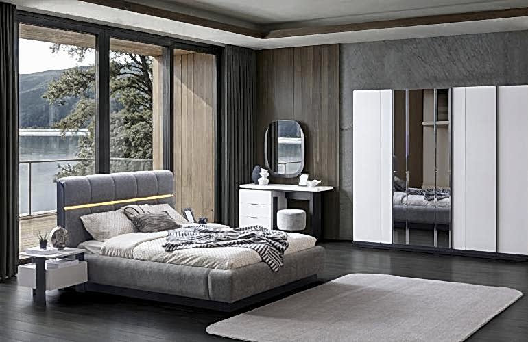 YATAK ODASI TAKIMI: Karyola, karyola başucu, 2 adet komodin, gardorop, şifonyer, şifonyer aynasından oluşmaktadır.