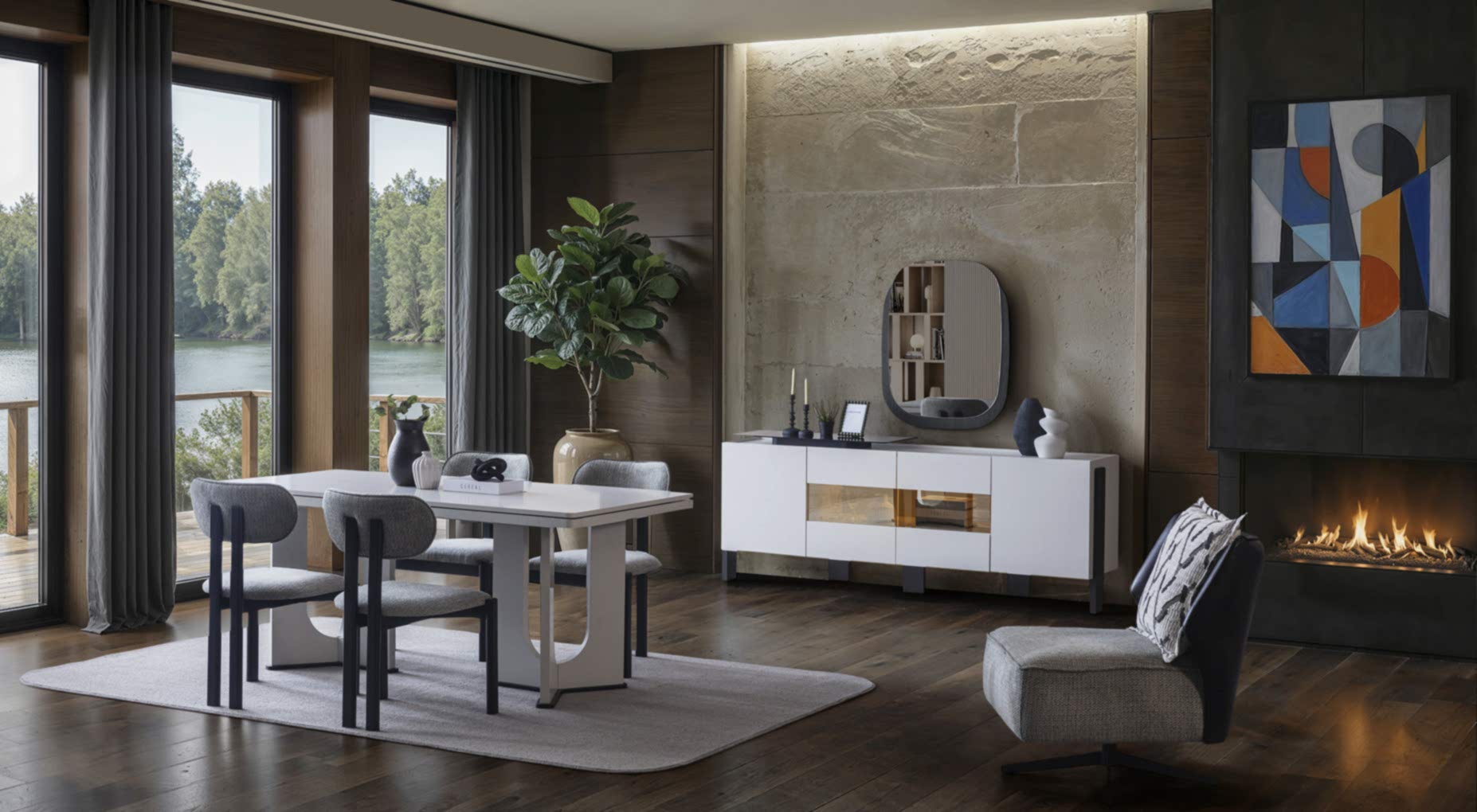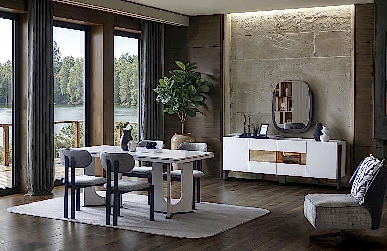 YEMEK ODASI TAKIMI: Konsol ,konsol aynası, yemek masası ve 4 adet elmas sandalyelidir.