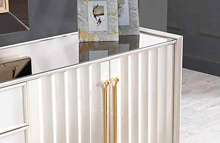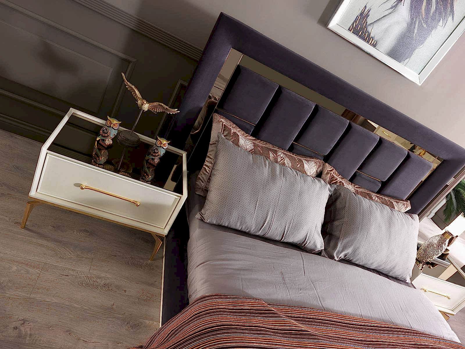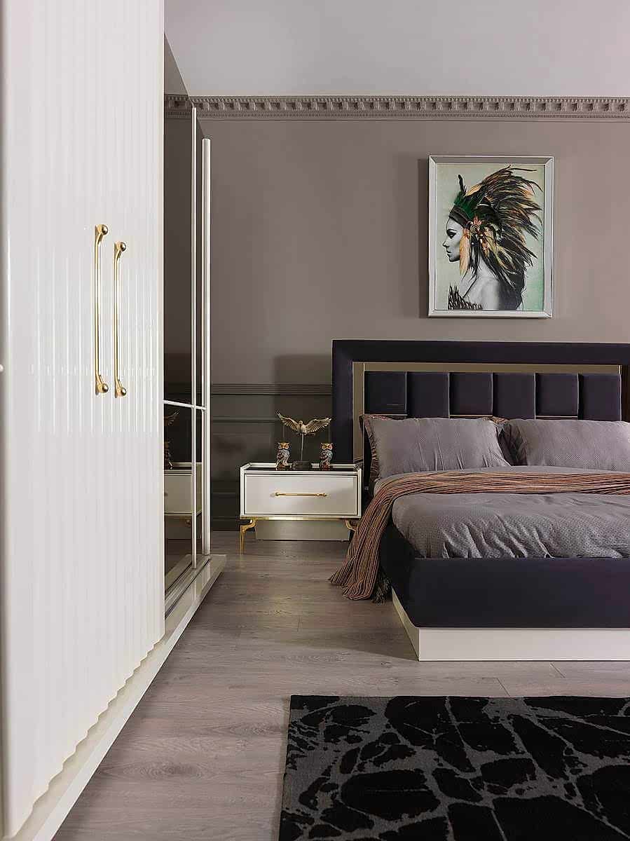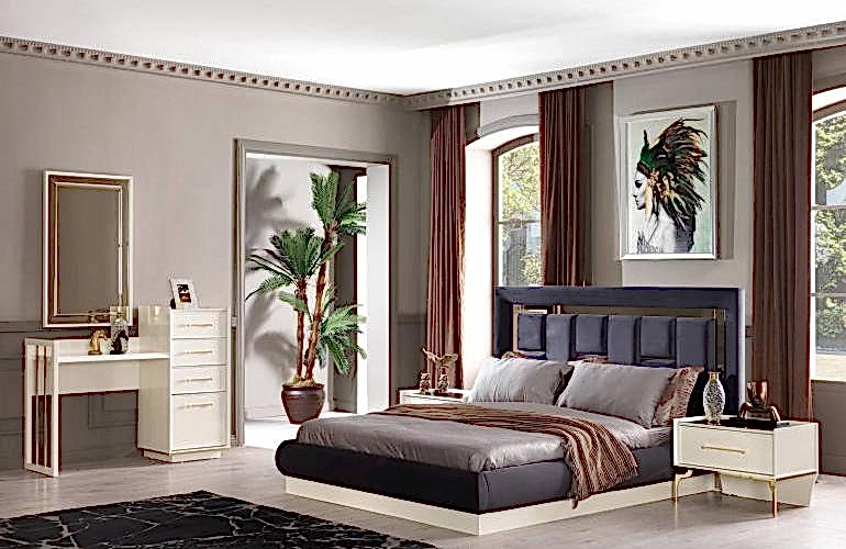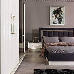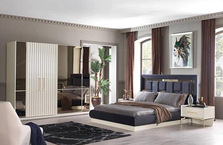 YATAK ODASI TAKIMI: Karyola, karyola başucu, 2 adet komodin, gardorop, şifonyer, şifonyer aynasından oluşmaktadır.