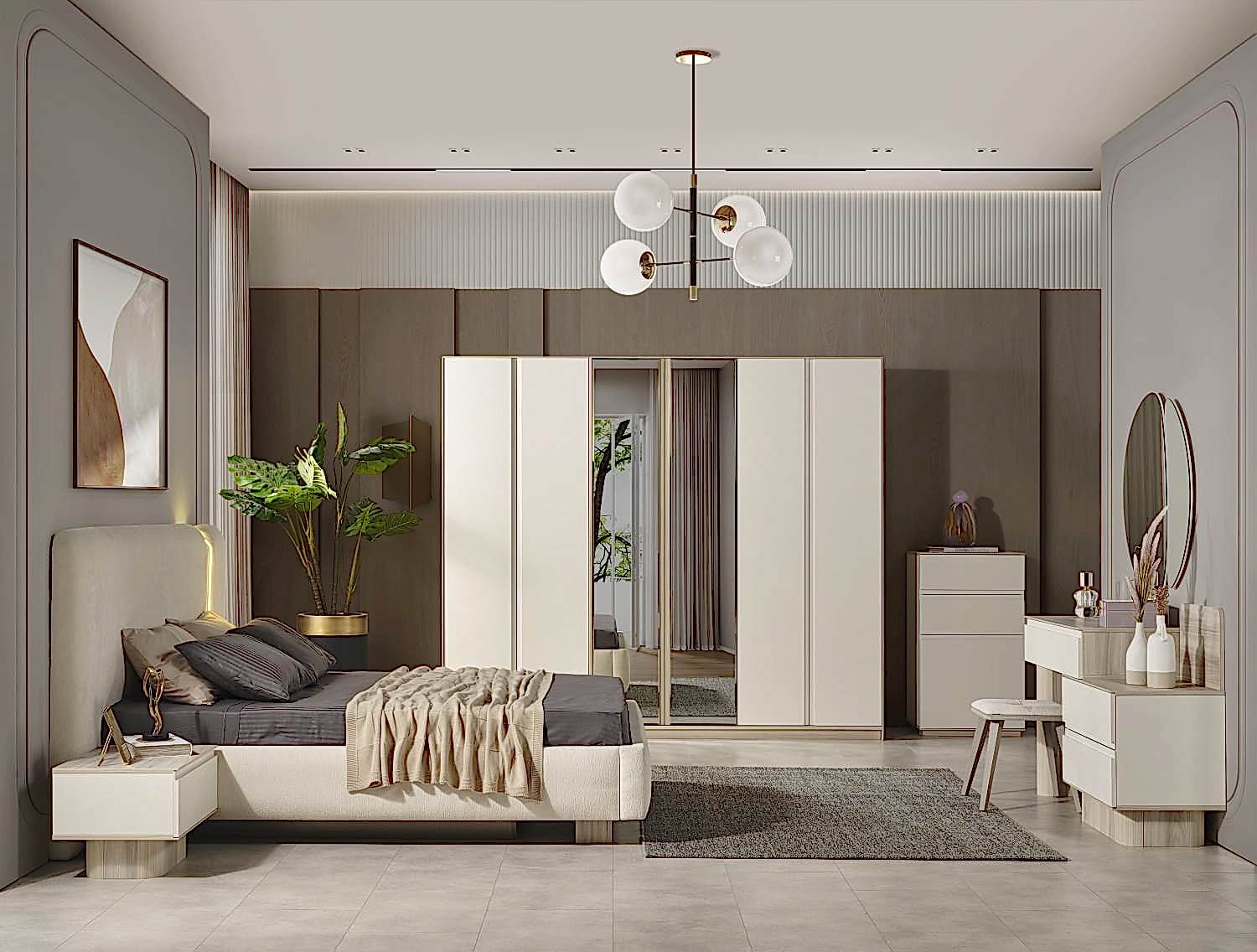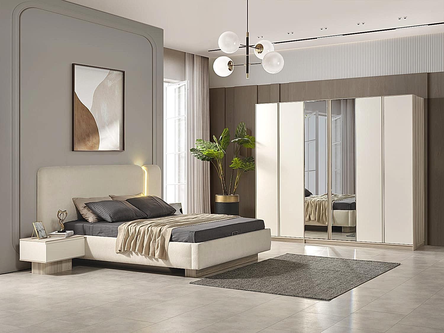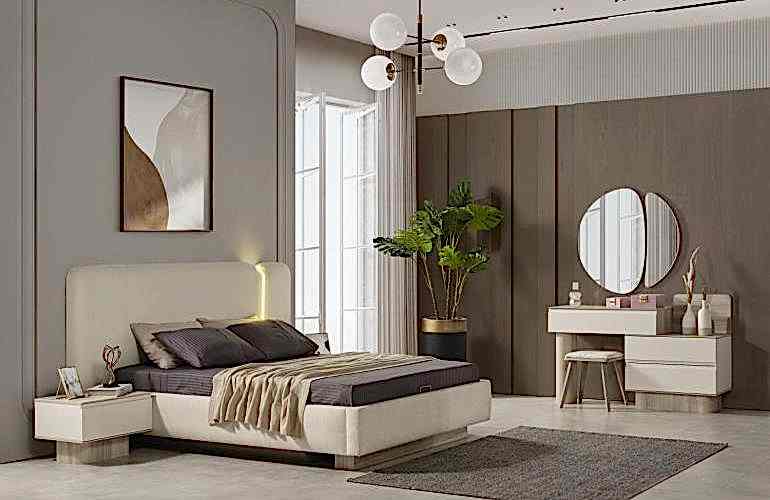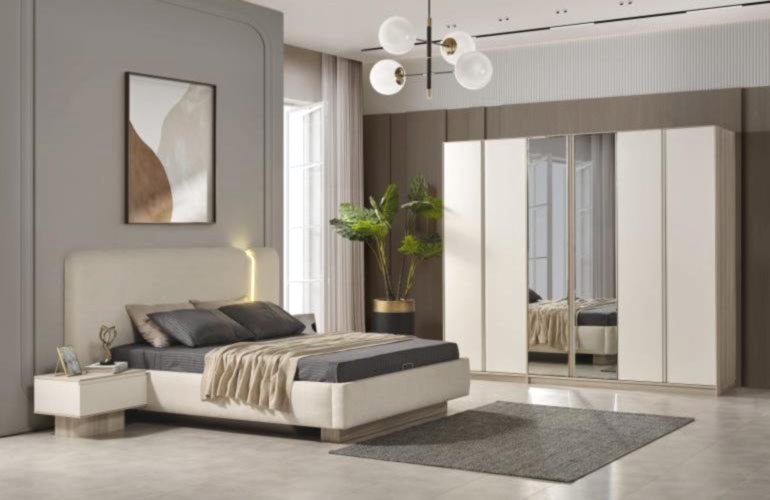 YATAK ODASI TAKIMI: Karyola, karyola başucu, 2 adet komodin, gardorop, şifonyer, şifonyer aynasından oluşmaktadır.