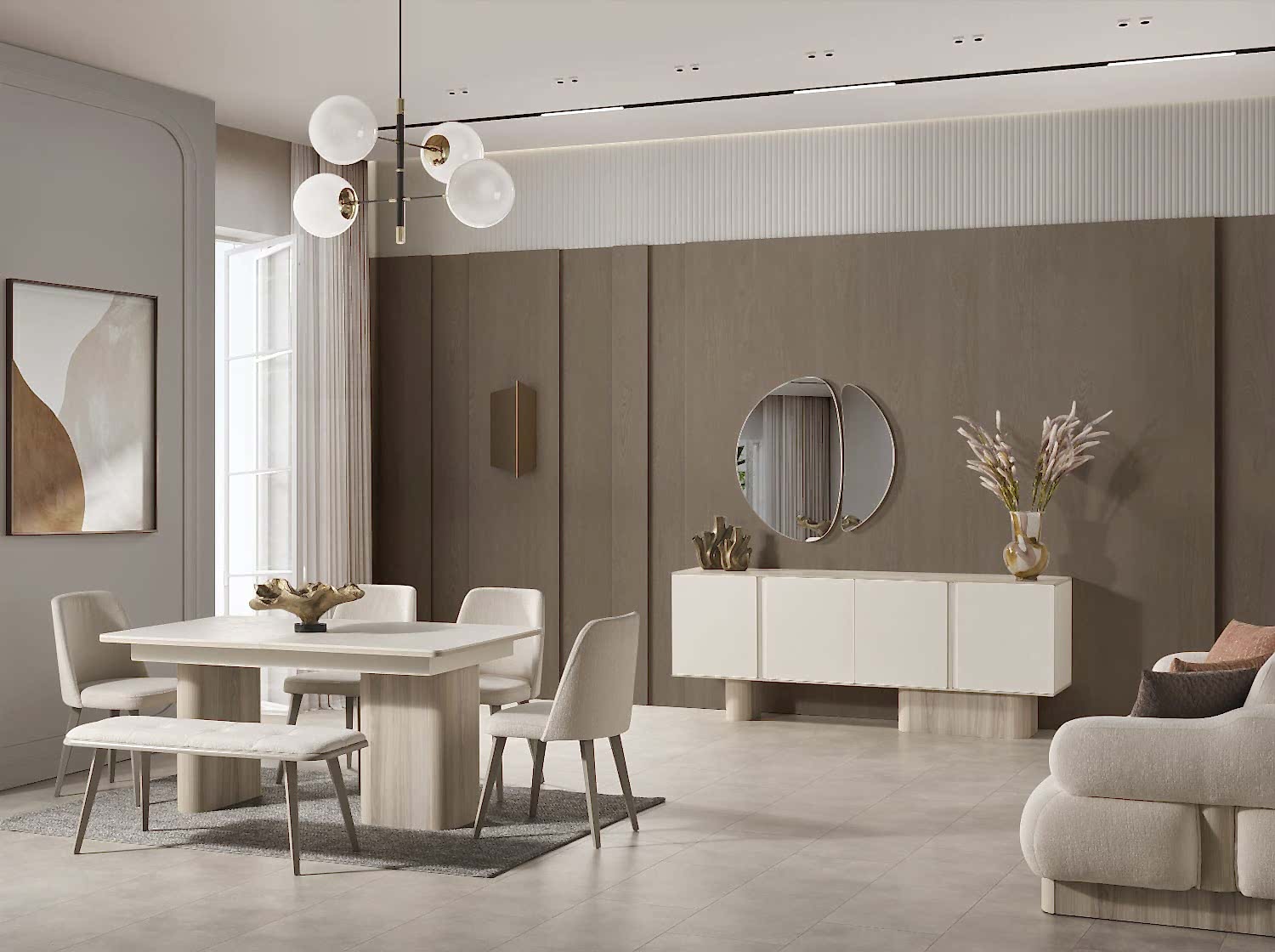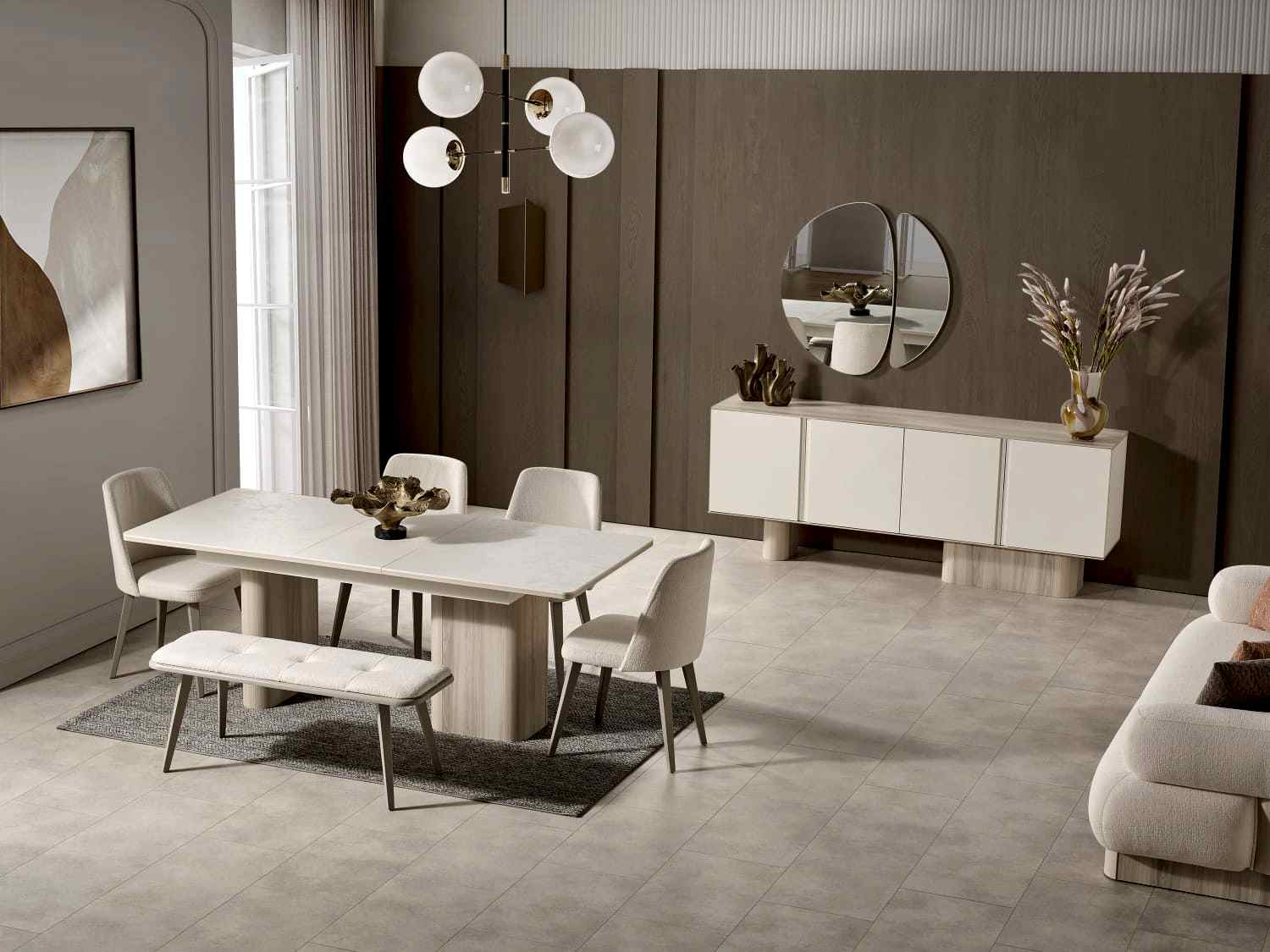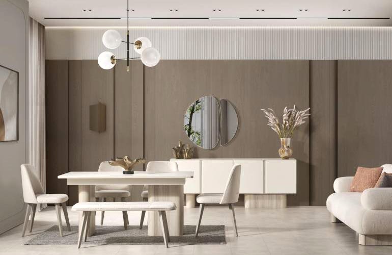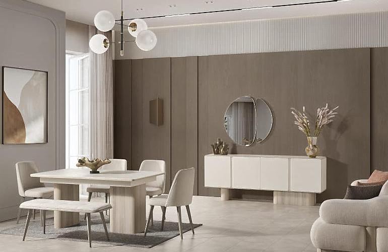 YEMEK ODASI TAKIMI: Konsol ,konsol aynası, yemek masası ve 4 adet elmas sandalyelidir.