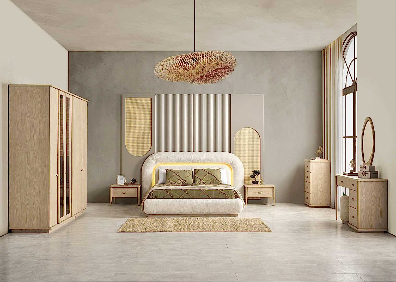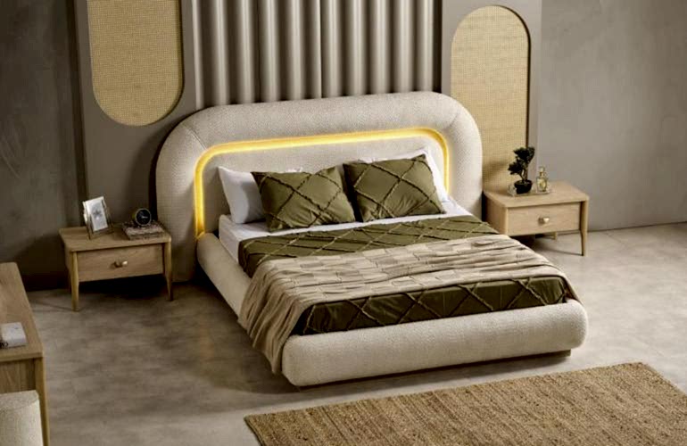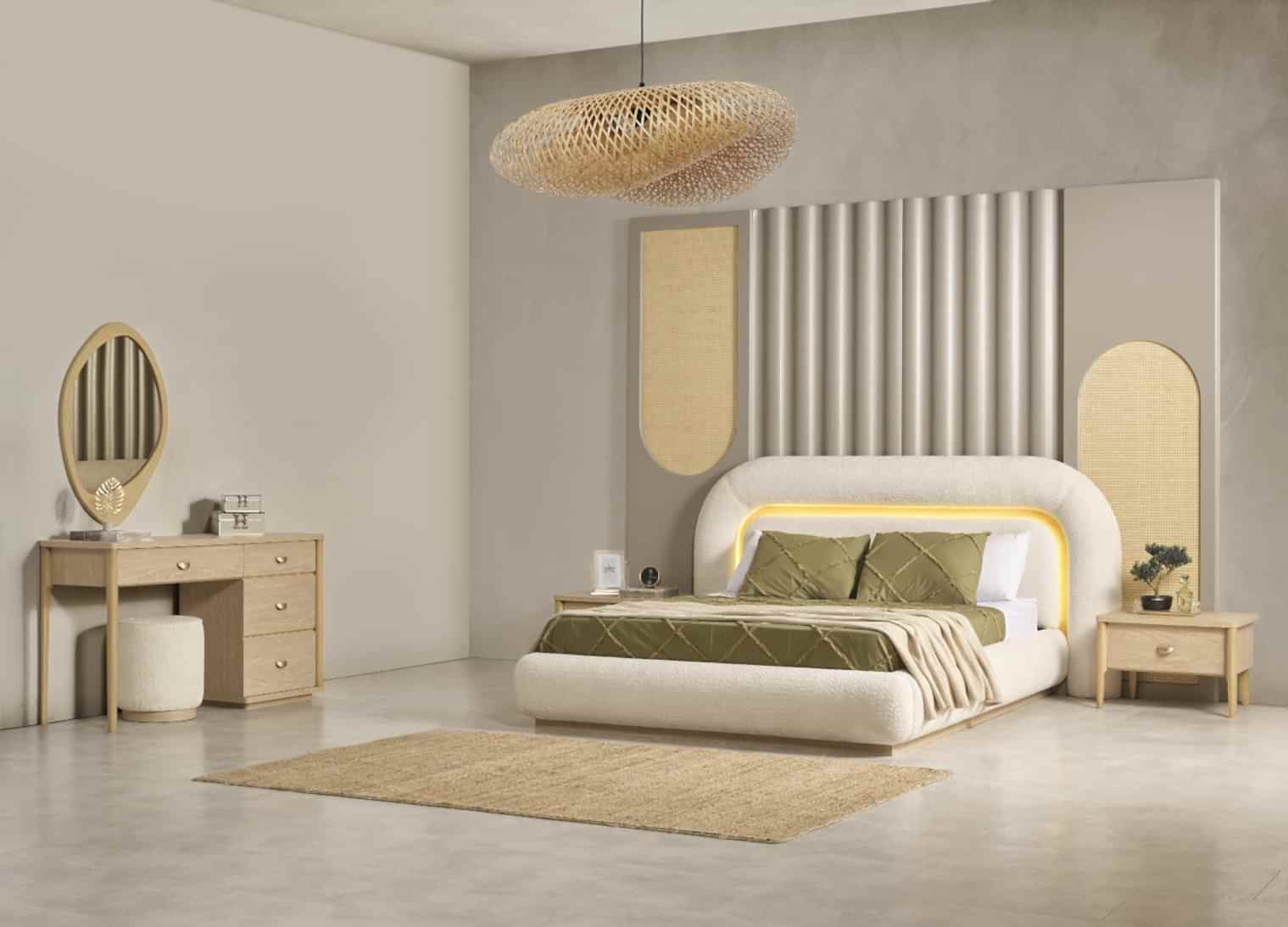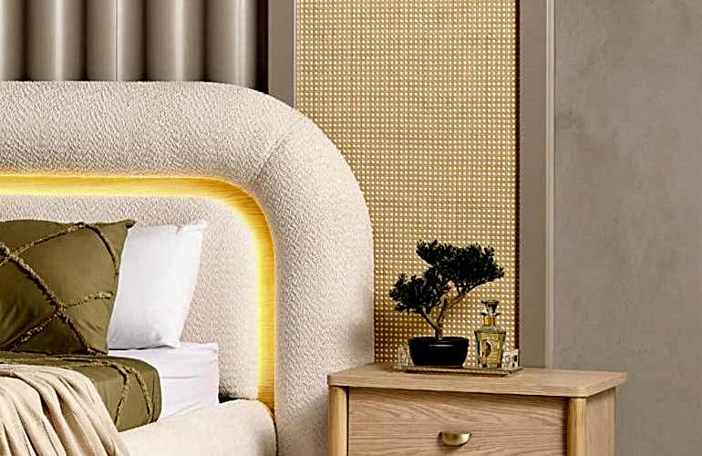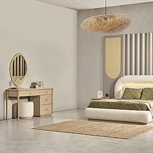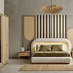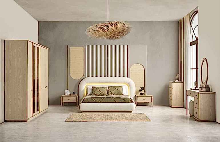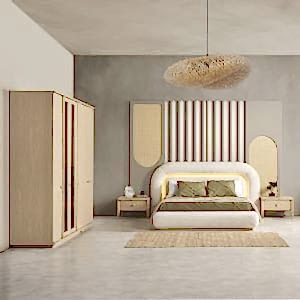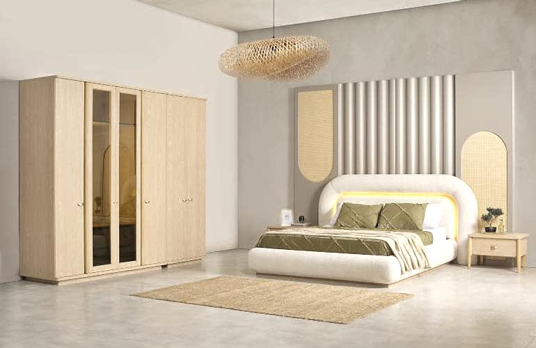 YATAK ODASI TAKIMI: Karyola, karyola başucu, 2 adet komodin, gardorop, şifonyer, şifonyer aynasından oluşmaktadır.