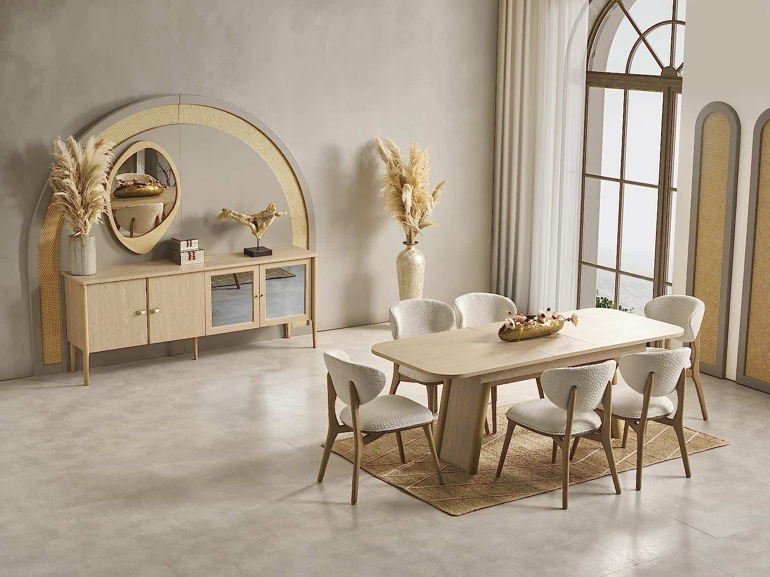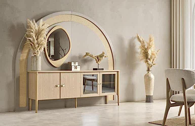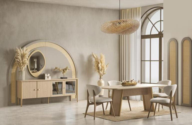YEMEK ODASI TAKIMI: Konsol ,konsol aynası, yemek masası ve 4 adet polo sandalyelidir.