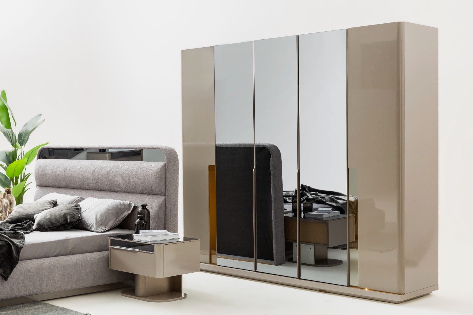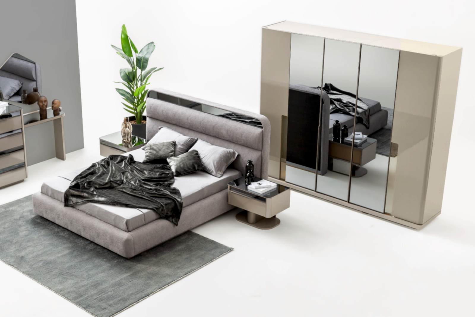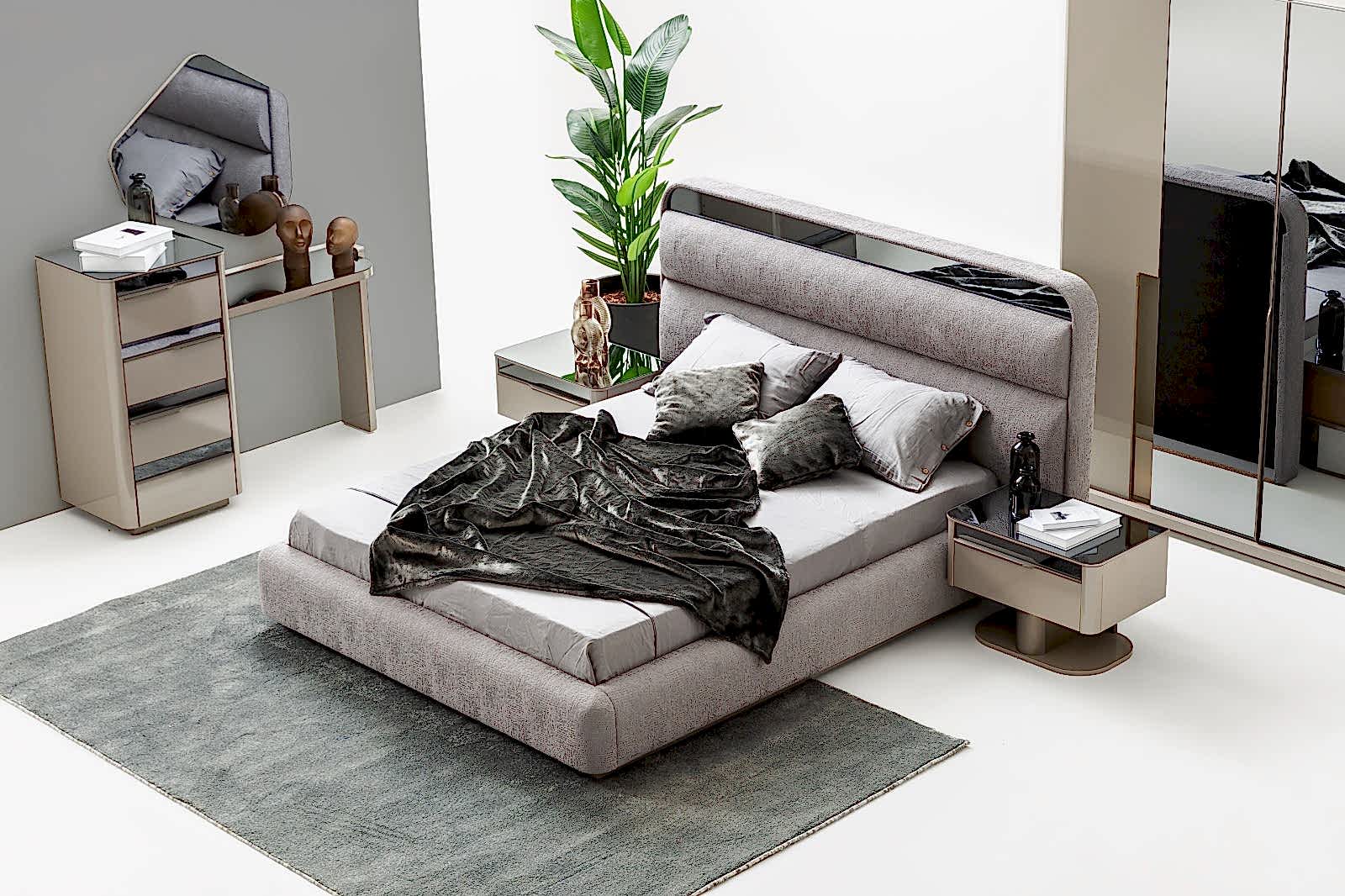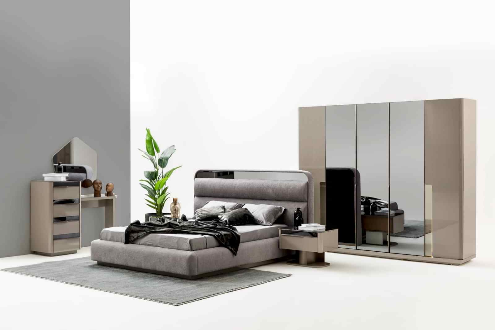 YATAK ODASI TAKIMI: Karyola, karyola başucu, 2 adet komodin, gardorop, şifonyer, şifonyer aynasından oluşmaktadır.