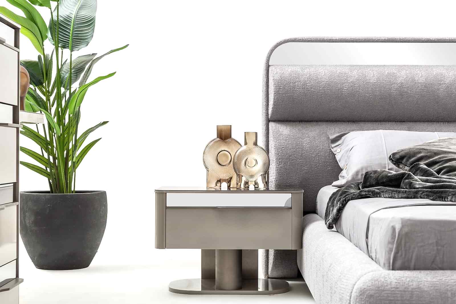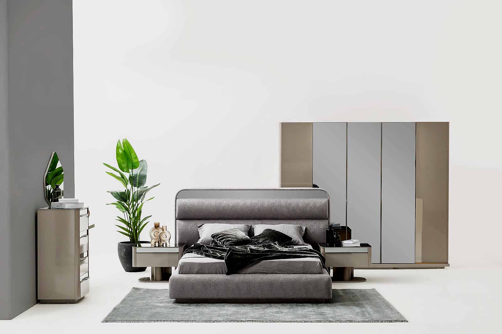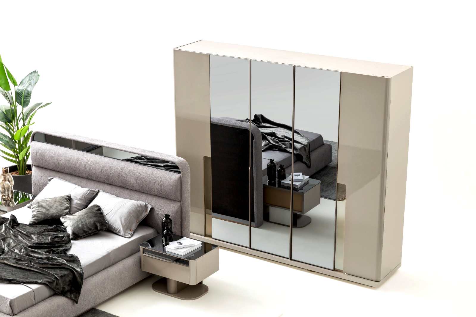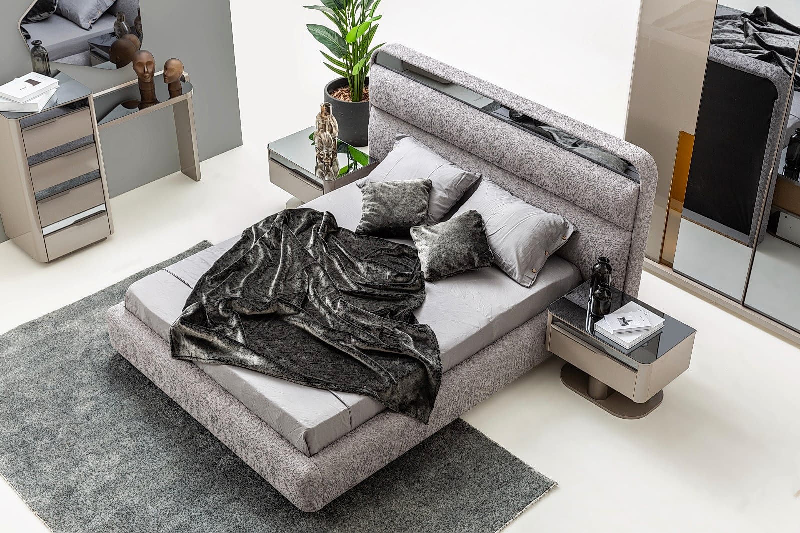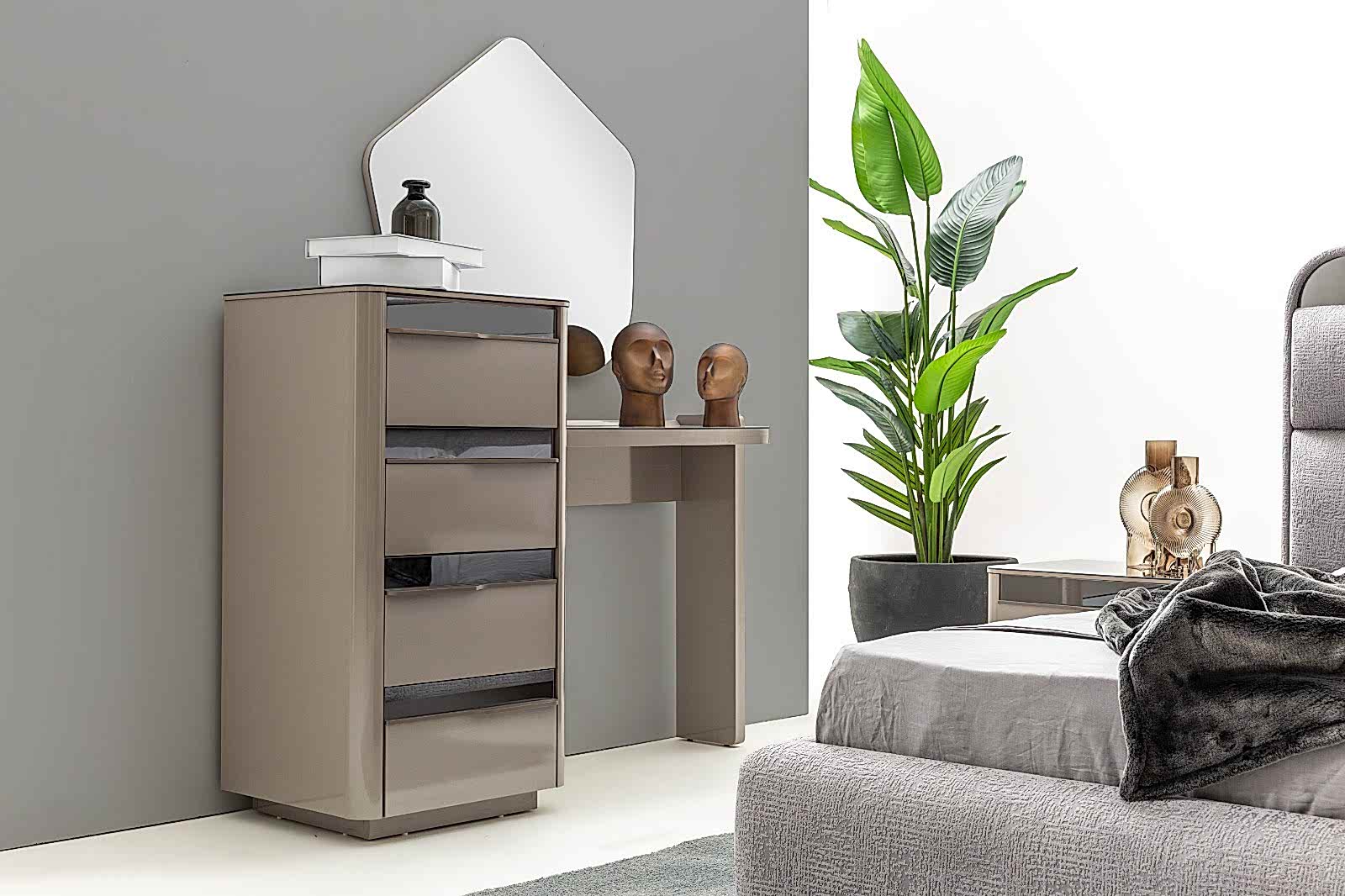 YATAK ODASI TAKIMI: Karyola, karyola başucu, 2 adet komodin, gardorop, şifonyer, şifonyer aynasından oluşmaktadır.