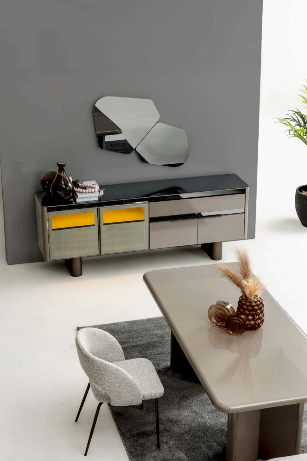 YEMEK ODASI TAKIMI: Konsol ,konsol aynası, yemek masası ve 4 adet sandalyelidir.