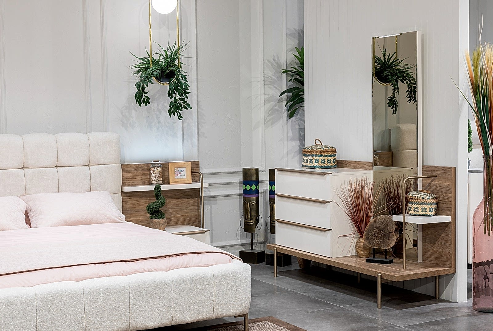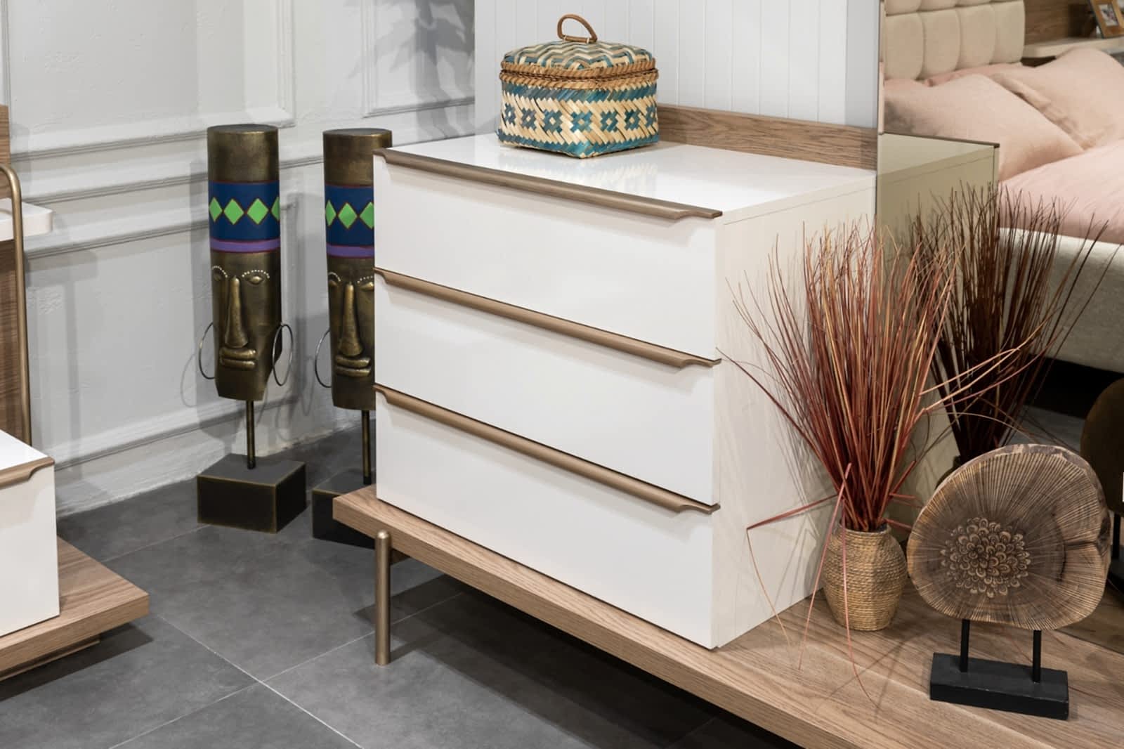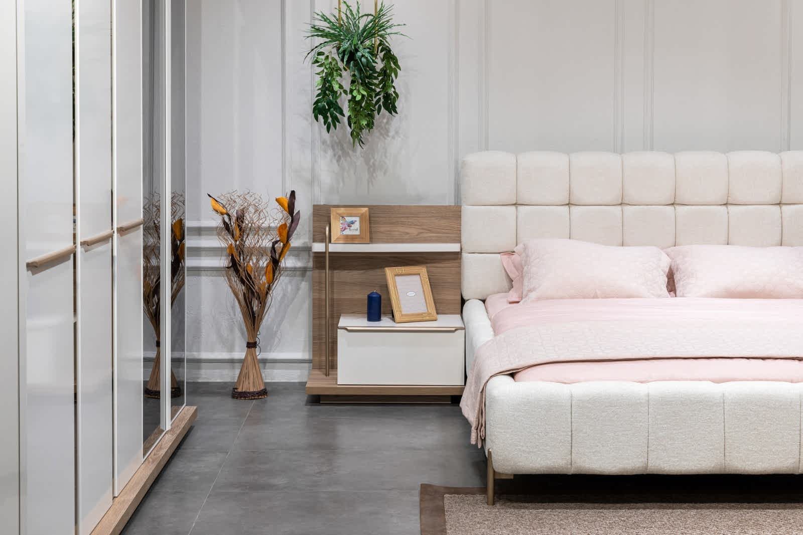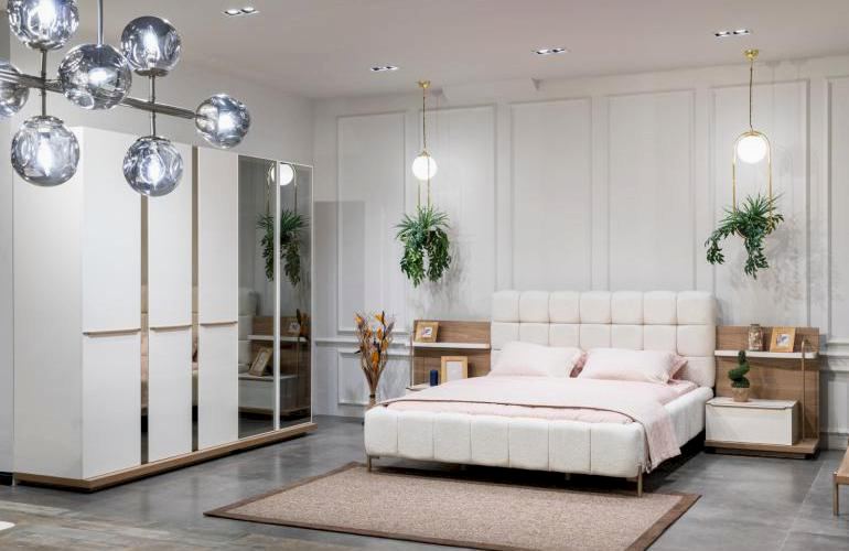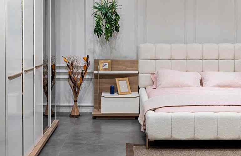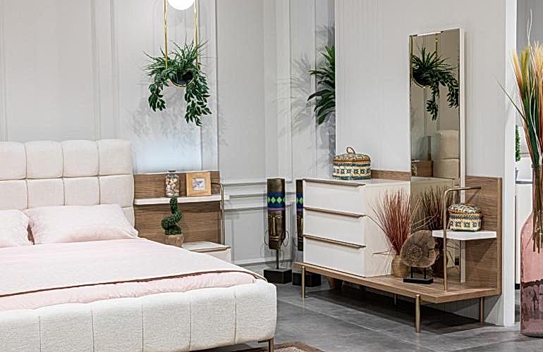YATAK ODASI TAKIMI: Karyola, karyola başucu, 2 adet komodin, gardorop, şifonyer, şifonyer aynasından oluşmaktadır.