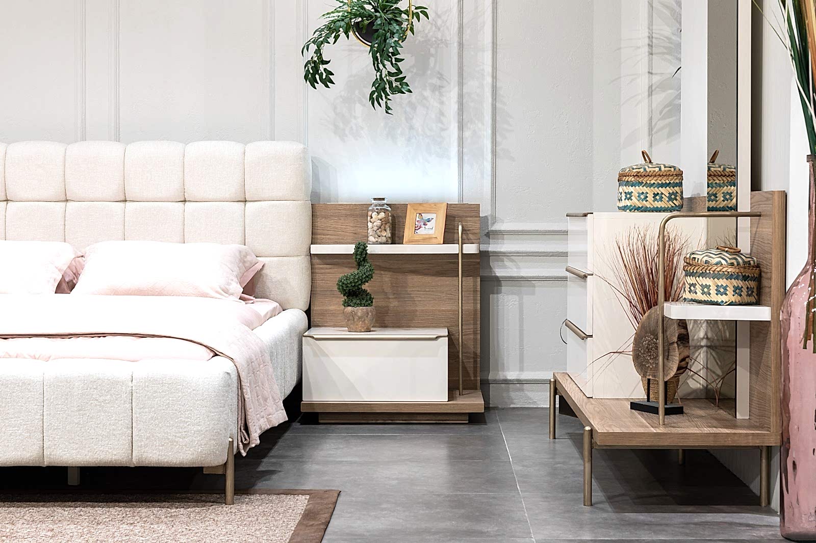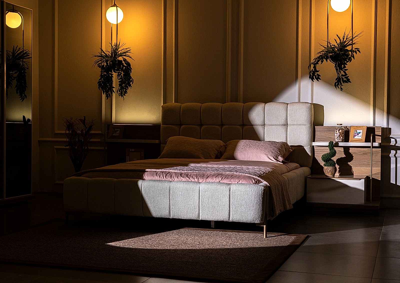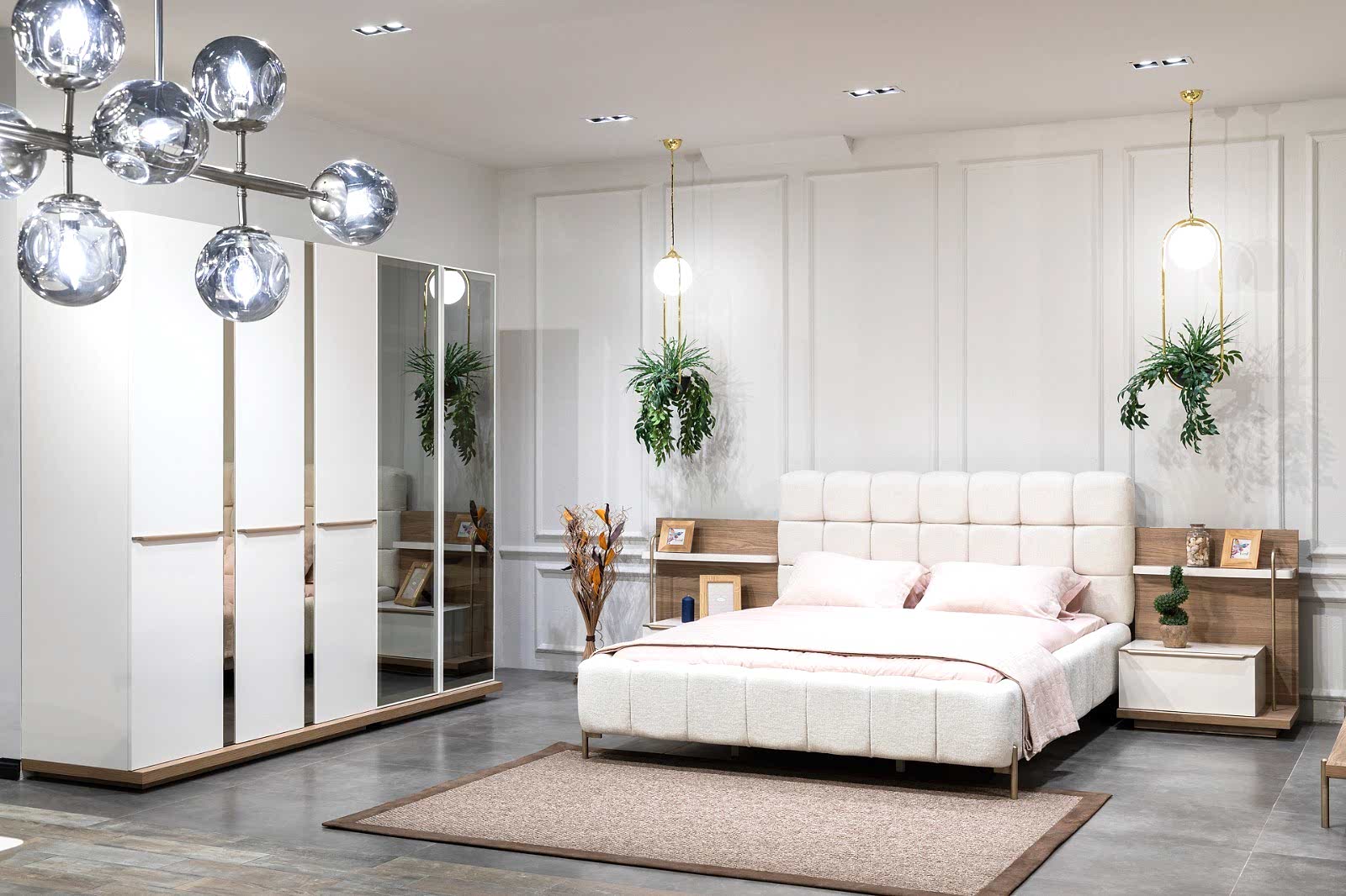 YATAK ODASI TAKIMI: Karyola, karyola başucu, 2 adet komodin, gardorop, şifonyer, şifonyer aynasından oluşmaktadır.
