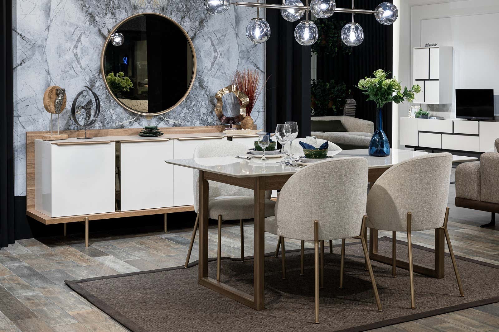 YEMEK ODASI TAKIMI: Konsol ,konsol aynası, yemek masası ve 4 adet isabelle sandalyelidir.