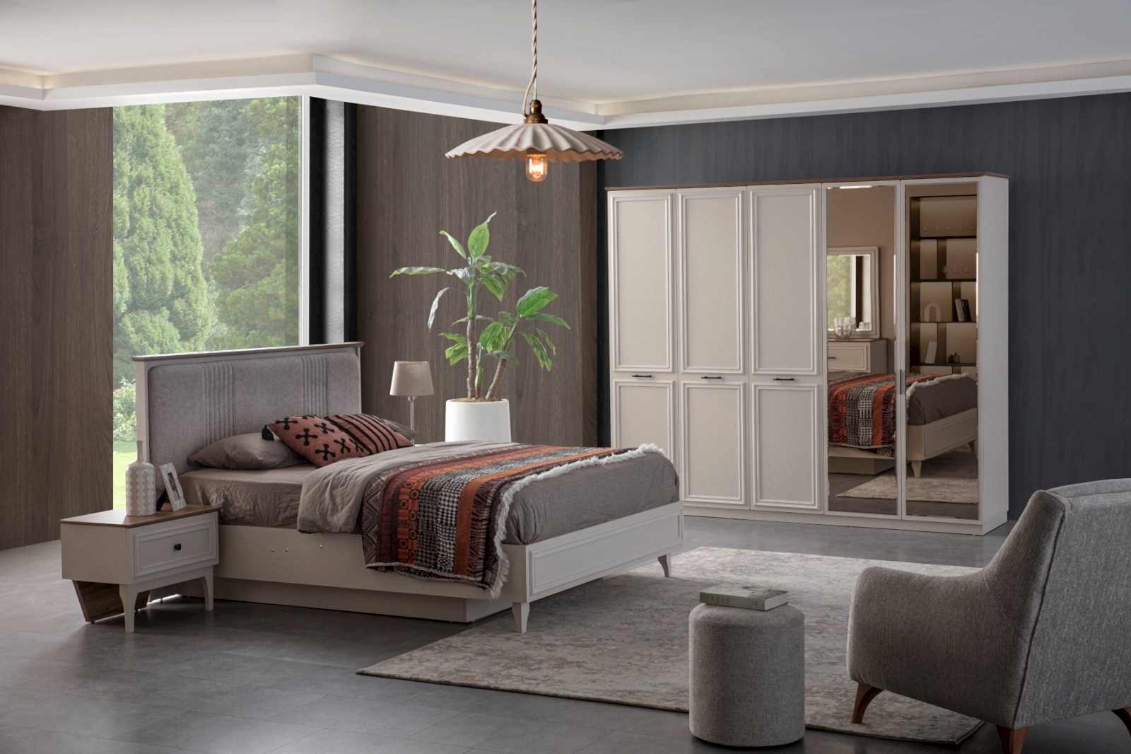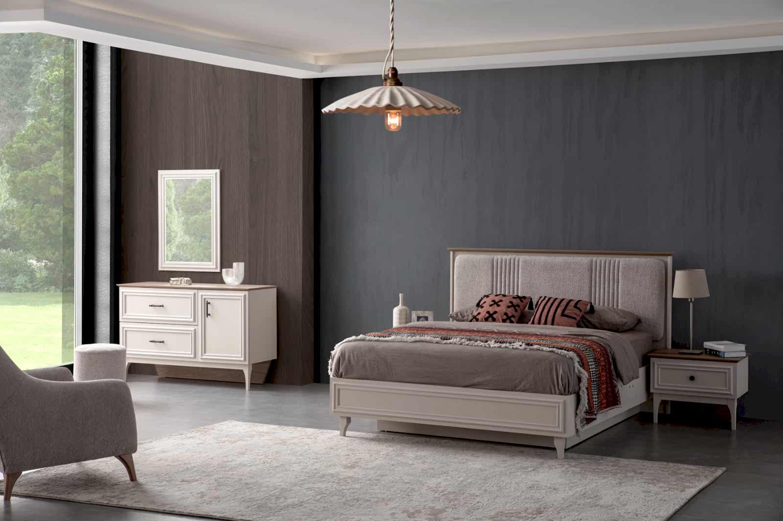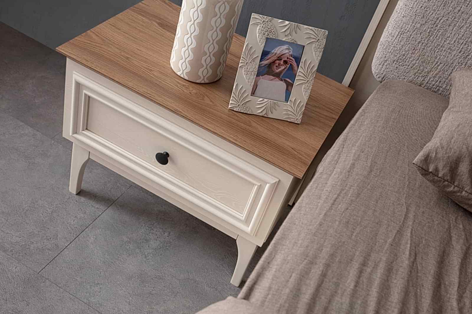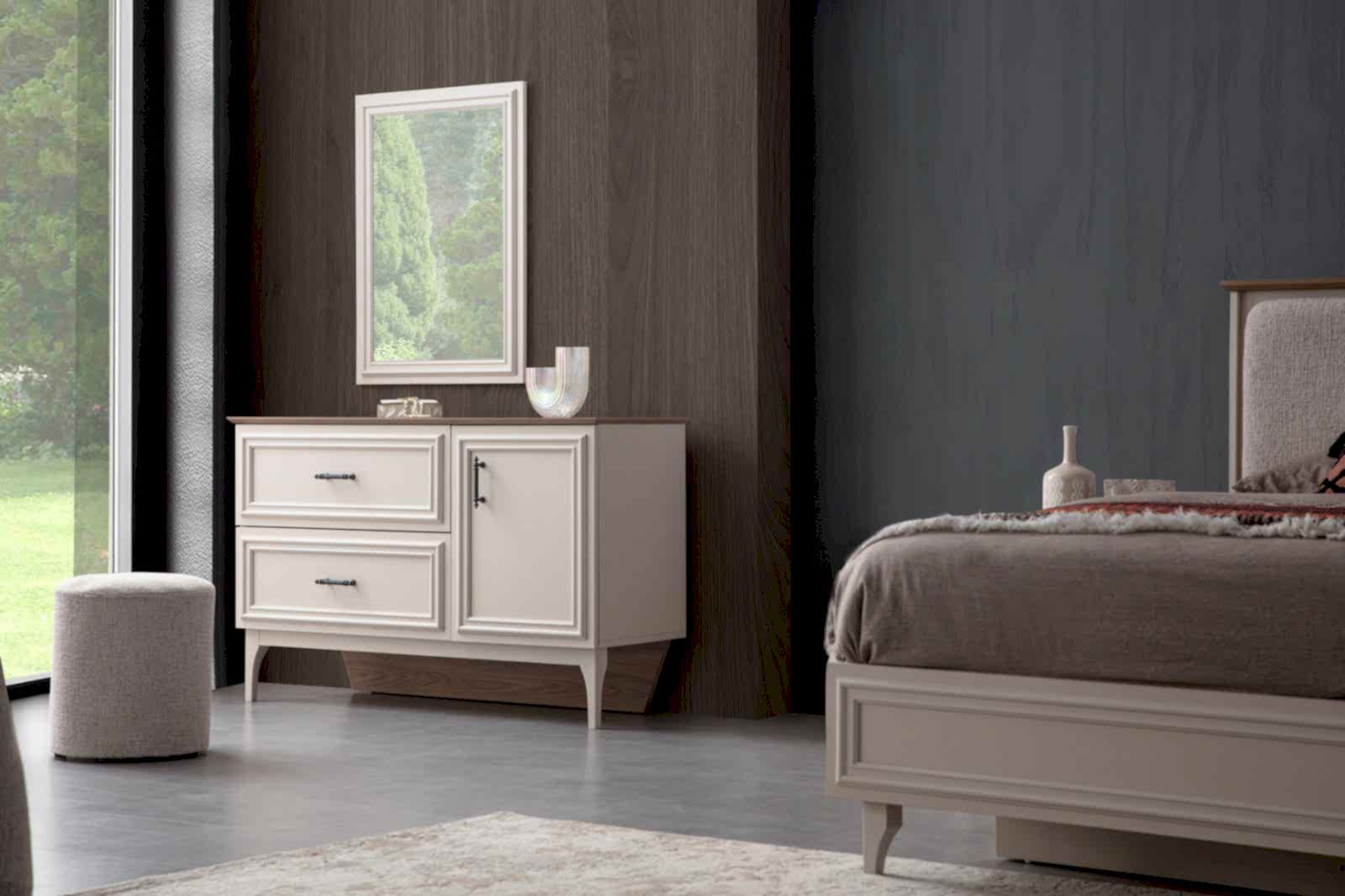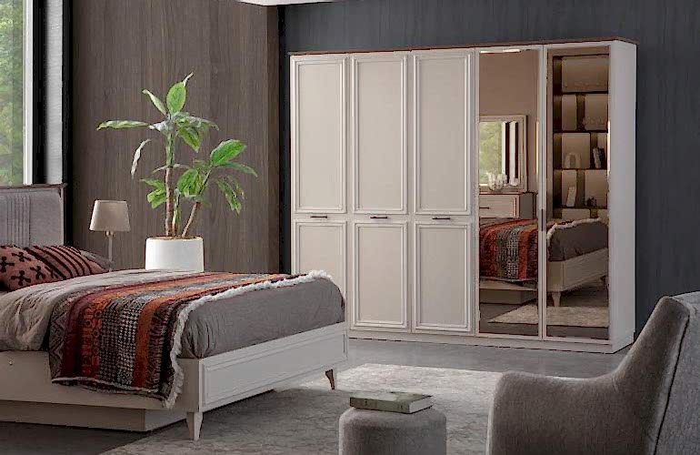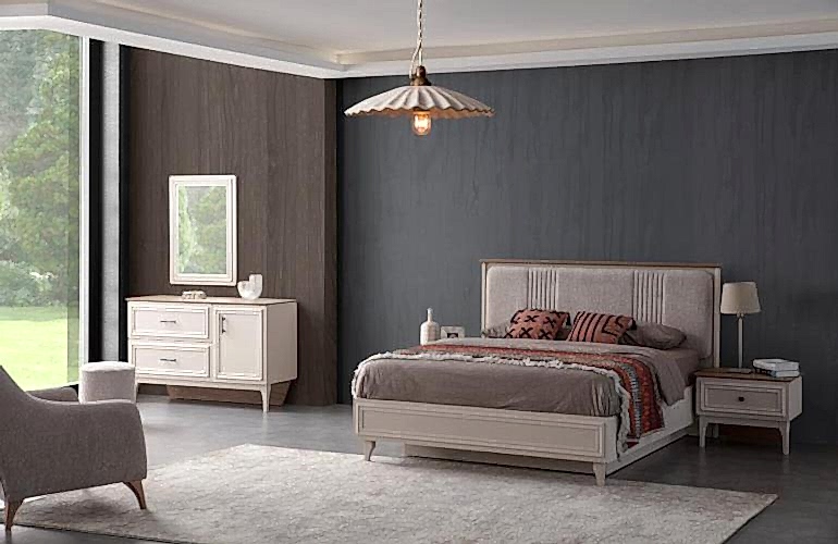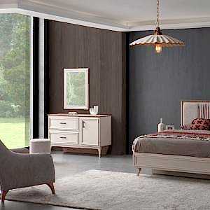 YATAK ODASI TAKIMI: Karyola, karyola başucu, 2 adet komodin, gardorop, şifonyer, şifonyer aynasından oluşmaktadır.