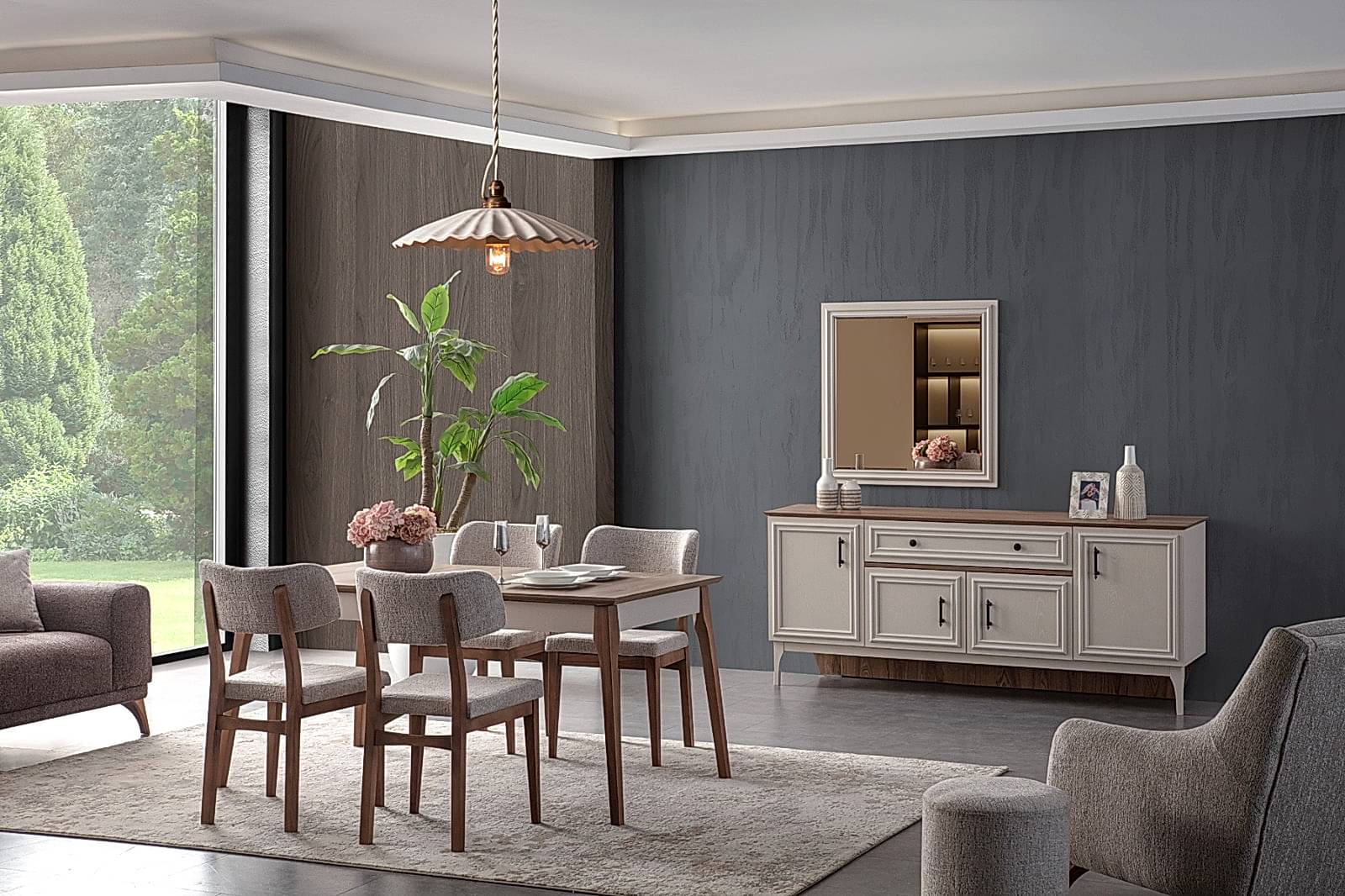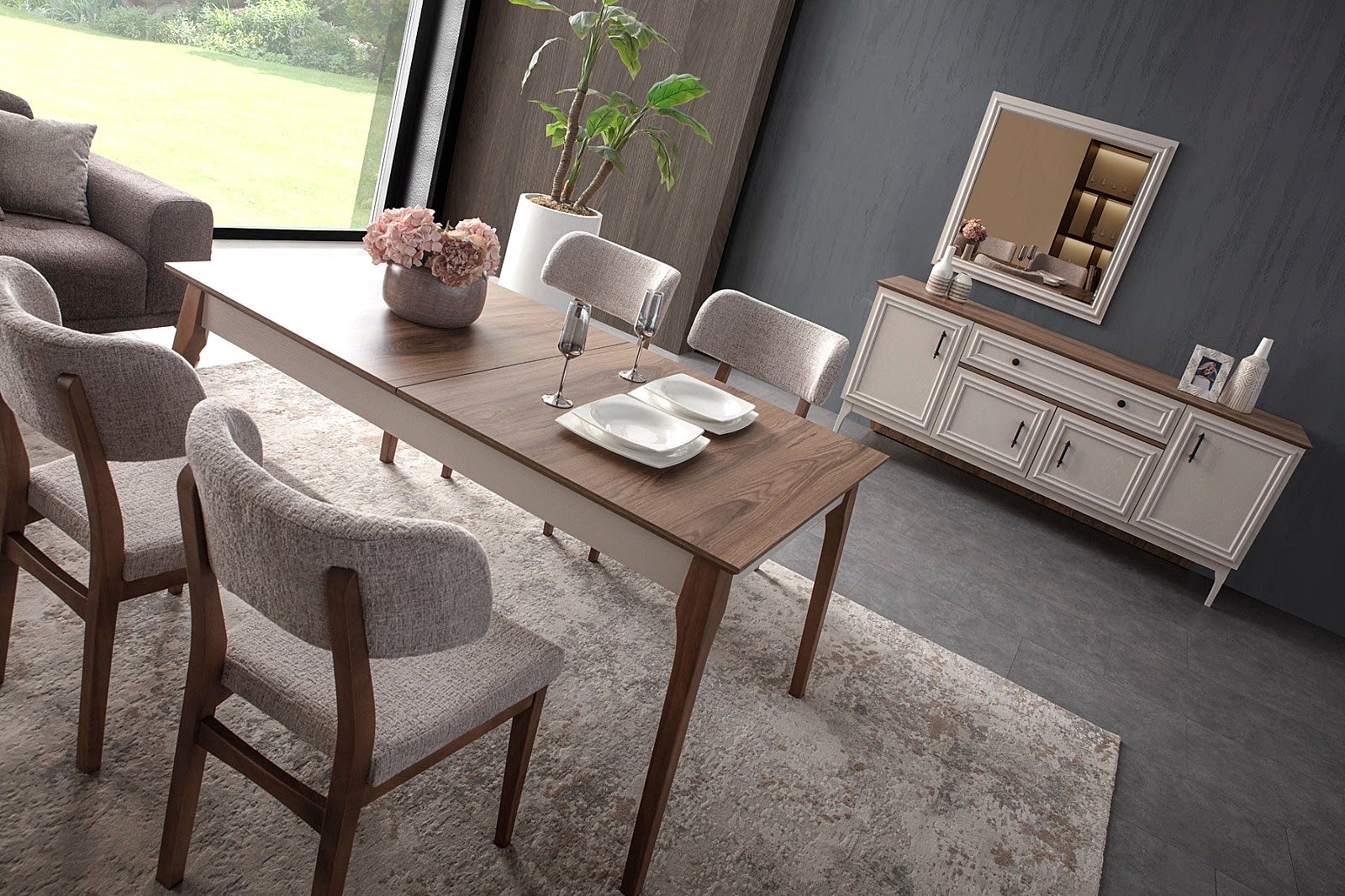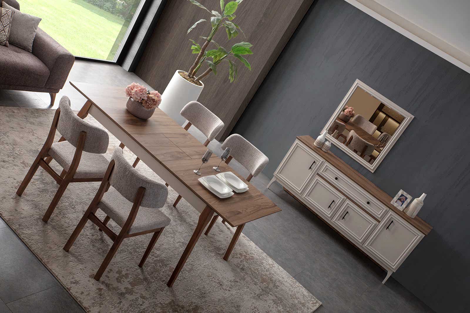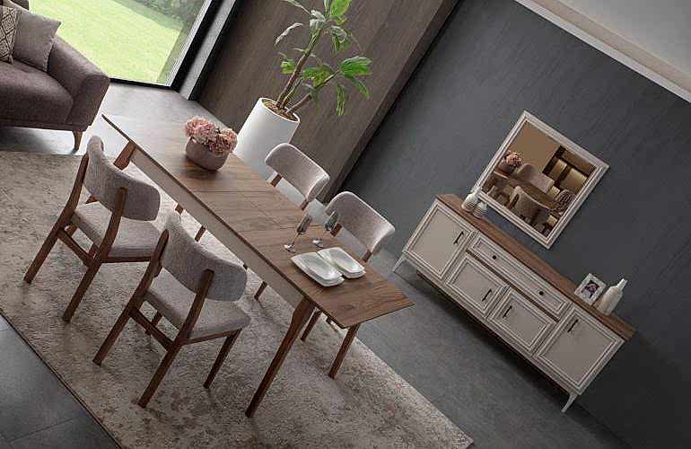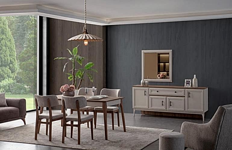 YEMEK ODASI TAKIMI: Konsol ,konsol aynası, yemek masası ve 4 adet malta sandalyelidir.