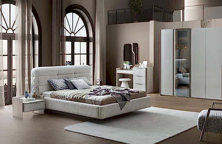 YATAK ODASI TAKIMI: Karyola, karyola başucu, 2 adet komodin, gardorop, şifonyer, şifonyer aynasından oluşmaktadır.