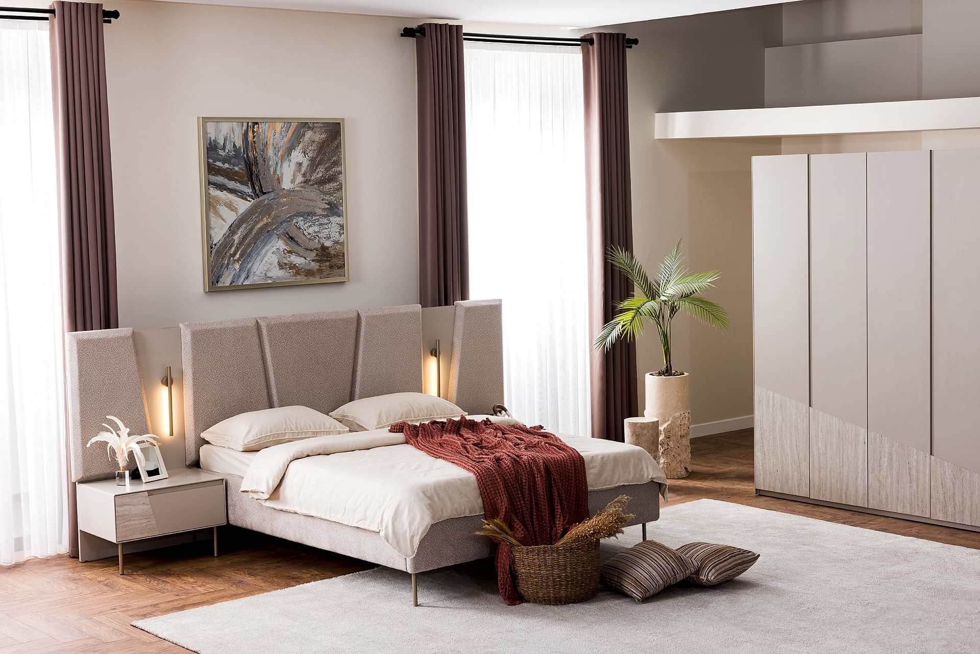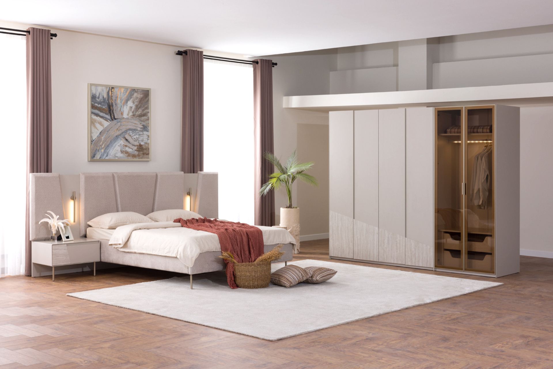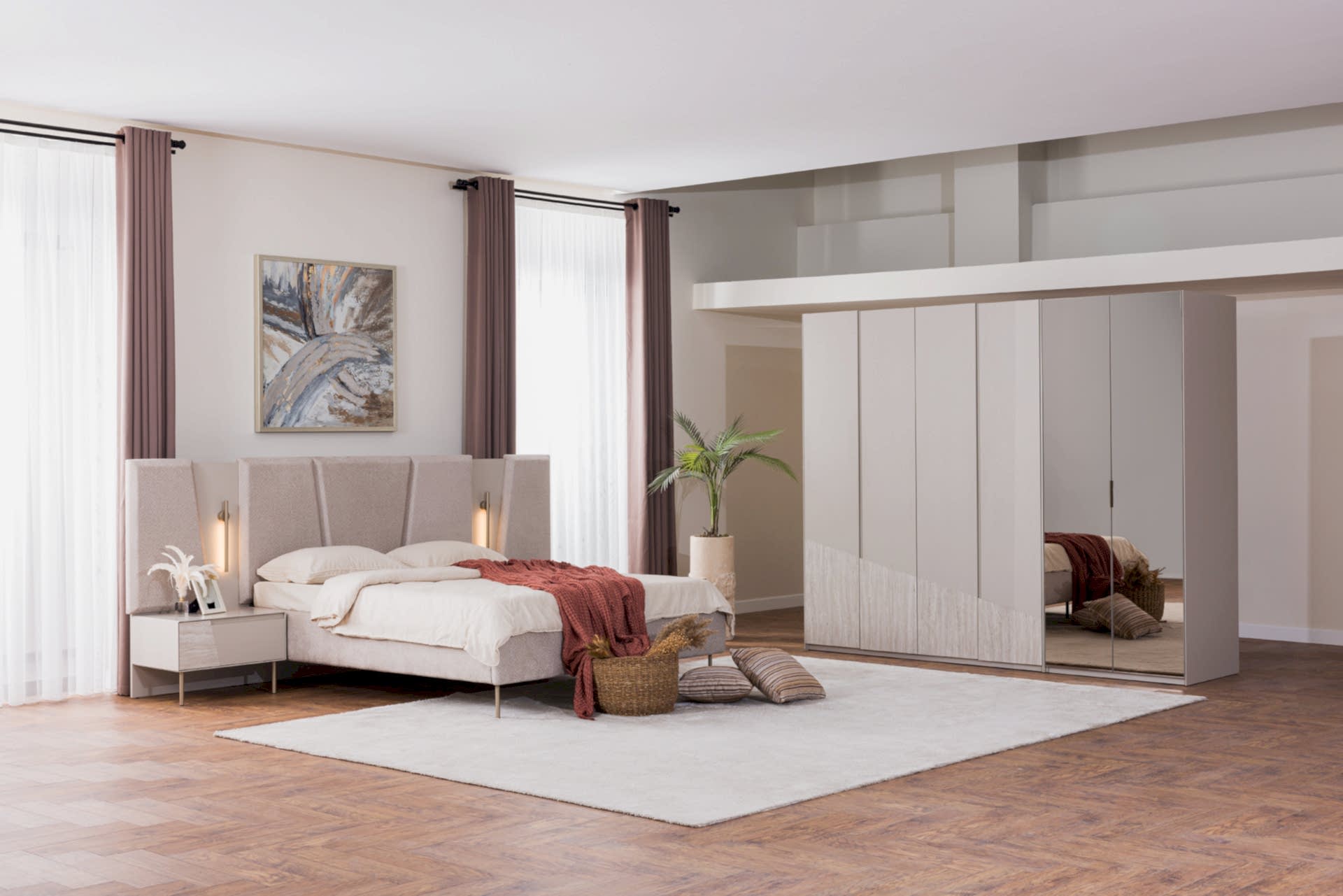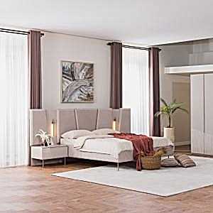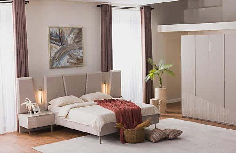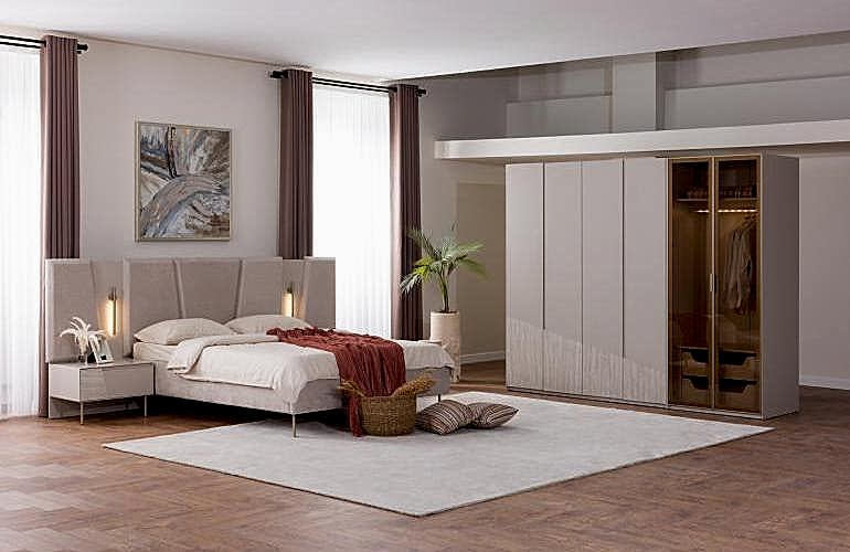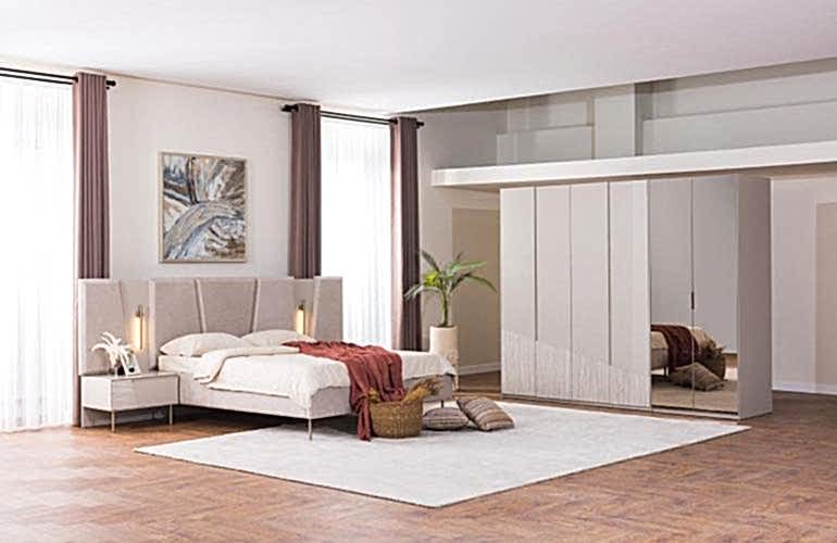 YATAK ODASI TAKIMI: Karyola, karyola başucu, 2 adet komodin, gardorop, şifonyer, şifonyer aynasından oluşmaktadır.