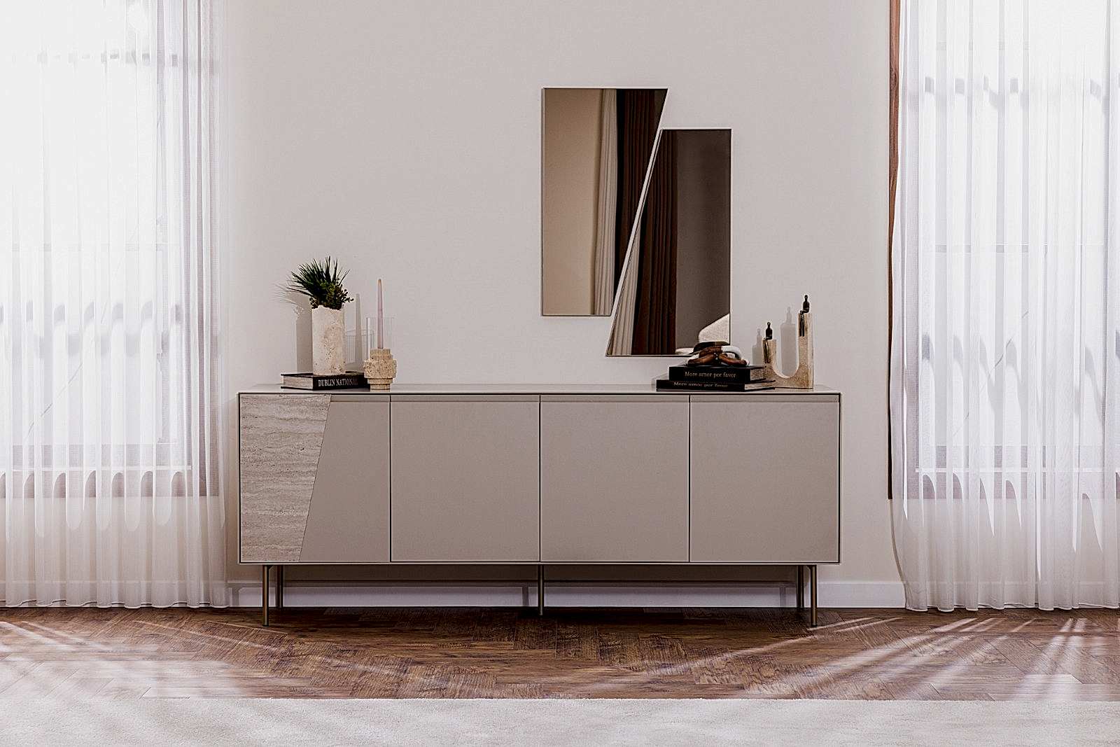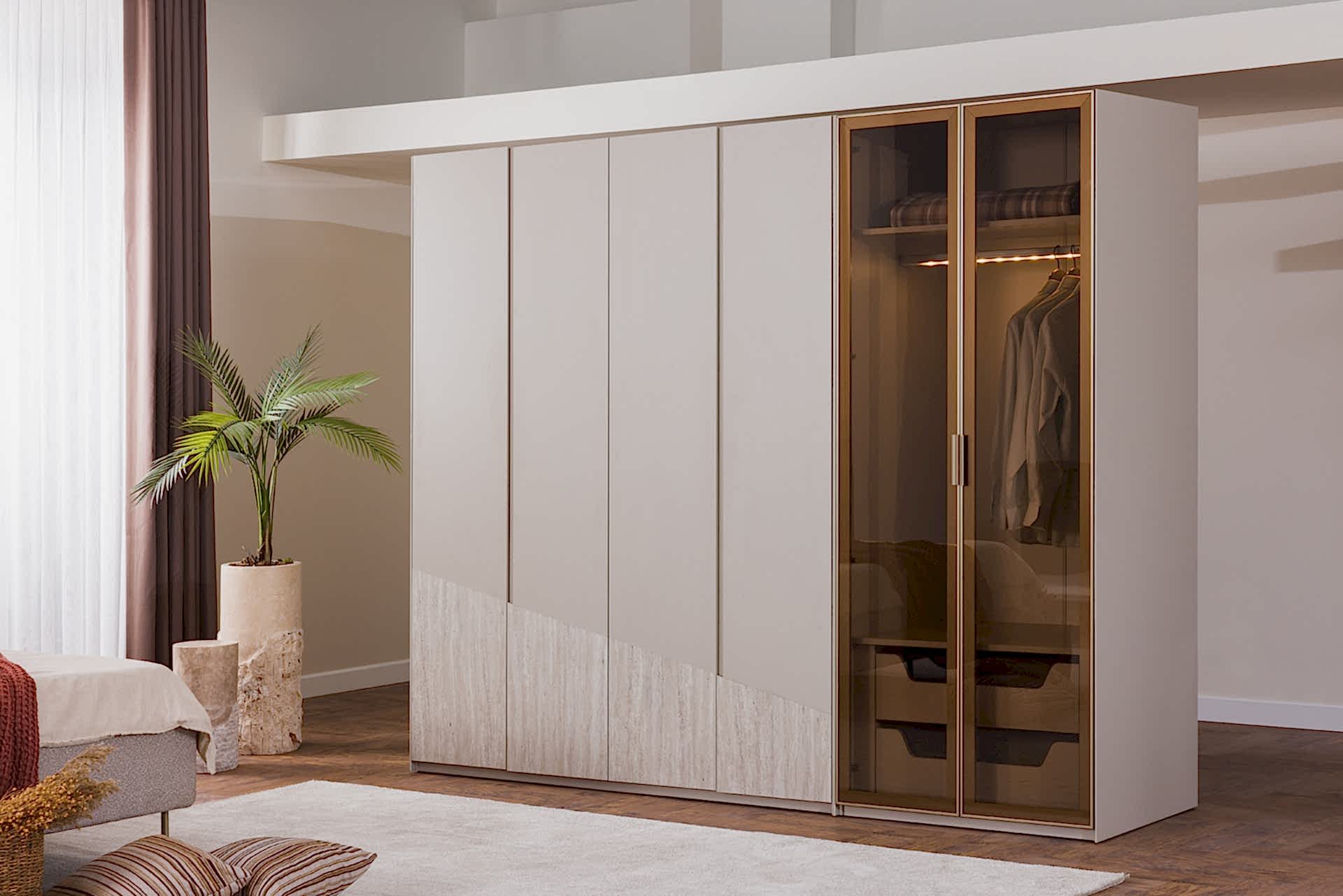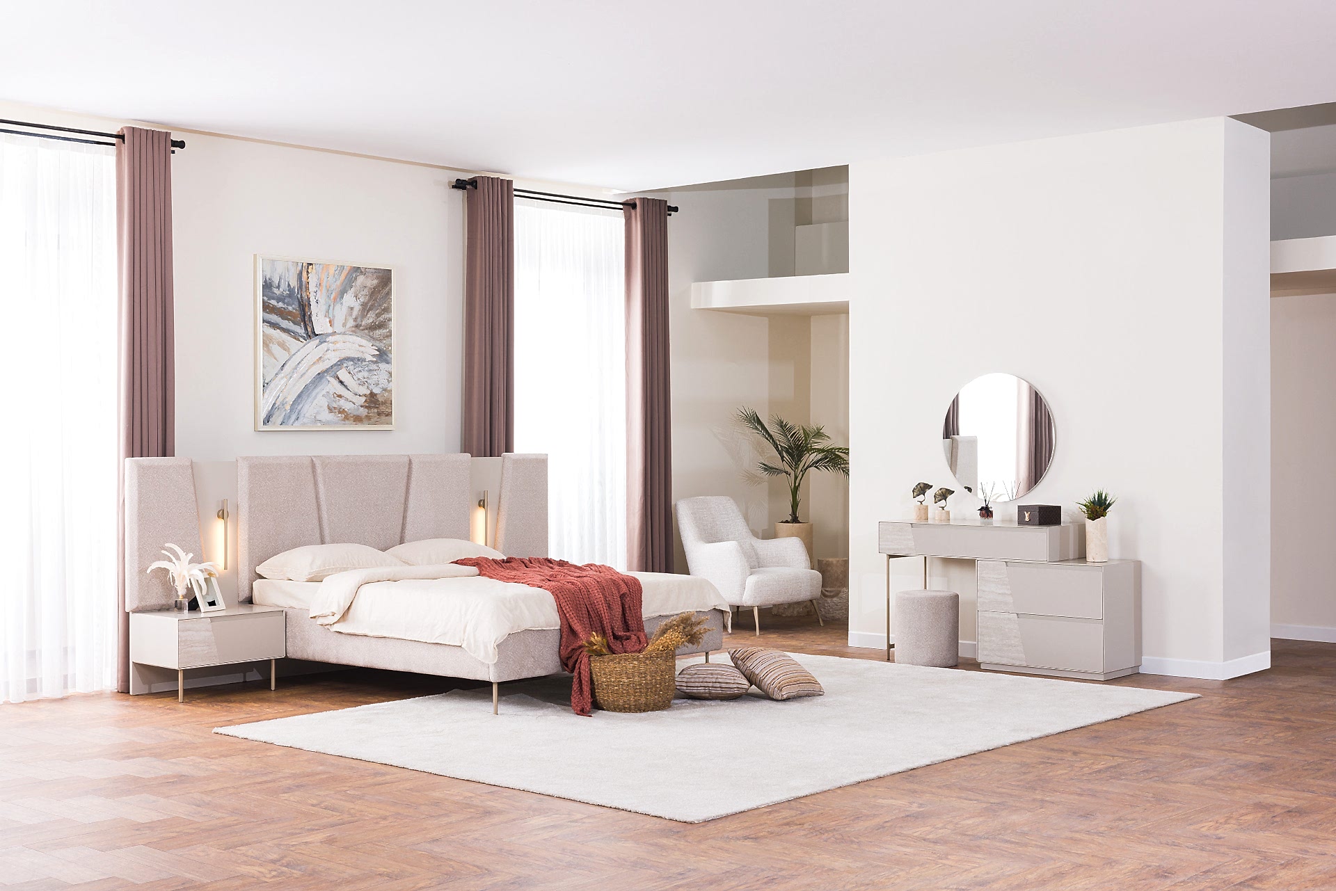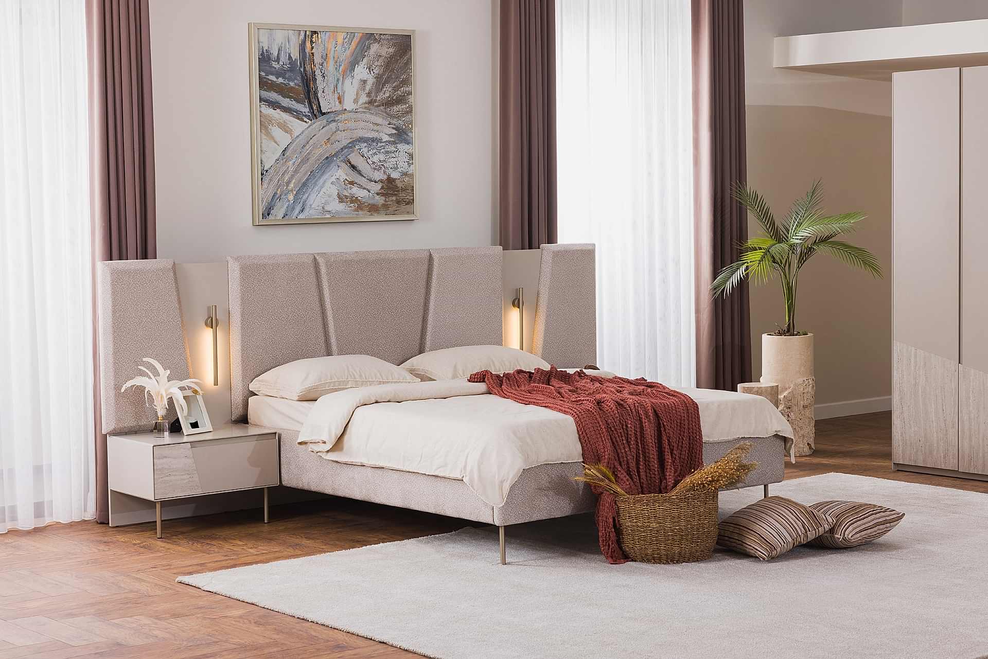 YATAK ODASI TAKIMI: Karyola, karyola başucu, 2 adet komodin, gardorop, şifonyer, şifonyer aynasından oluşmaktadır.