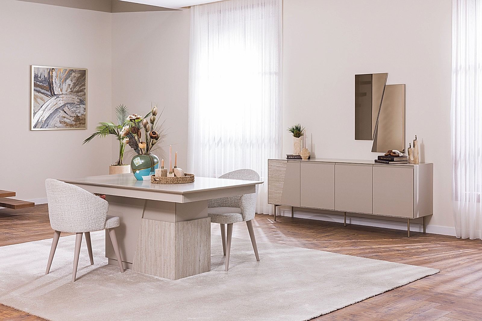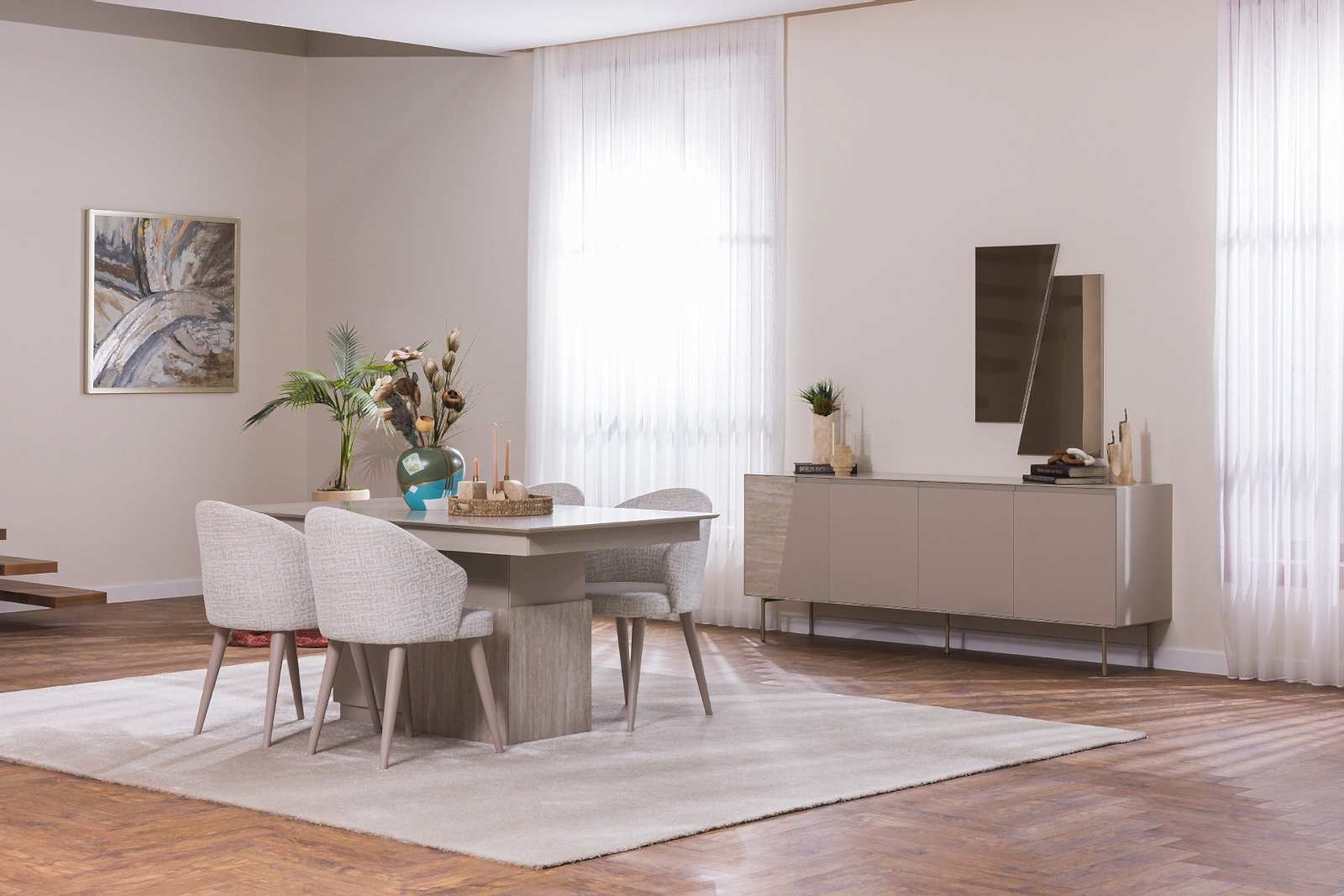 YEMEK ODASI TAKIMI: Konsol ,konsol aynası, yemek masası ve 4 adet elmas sandalyelidir.