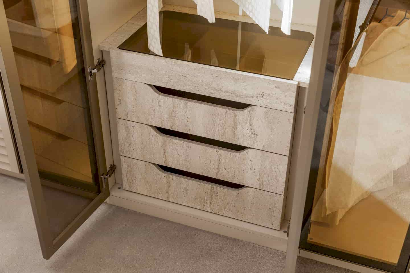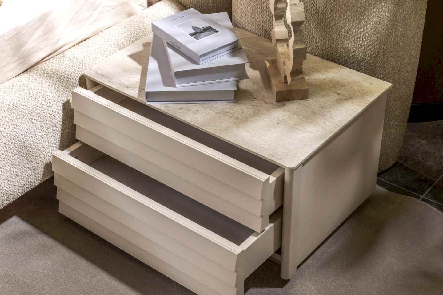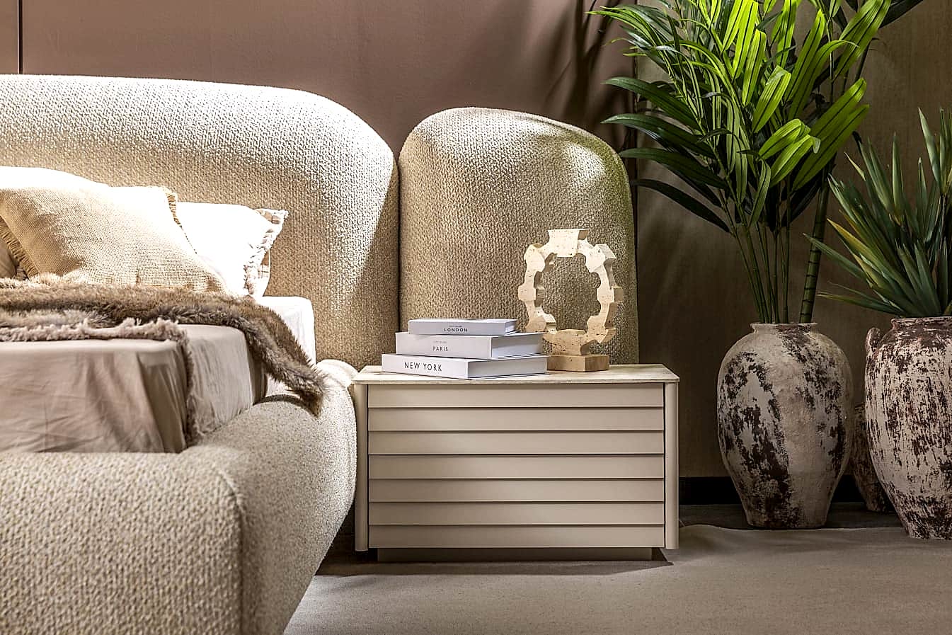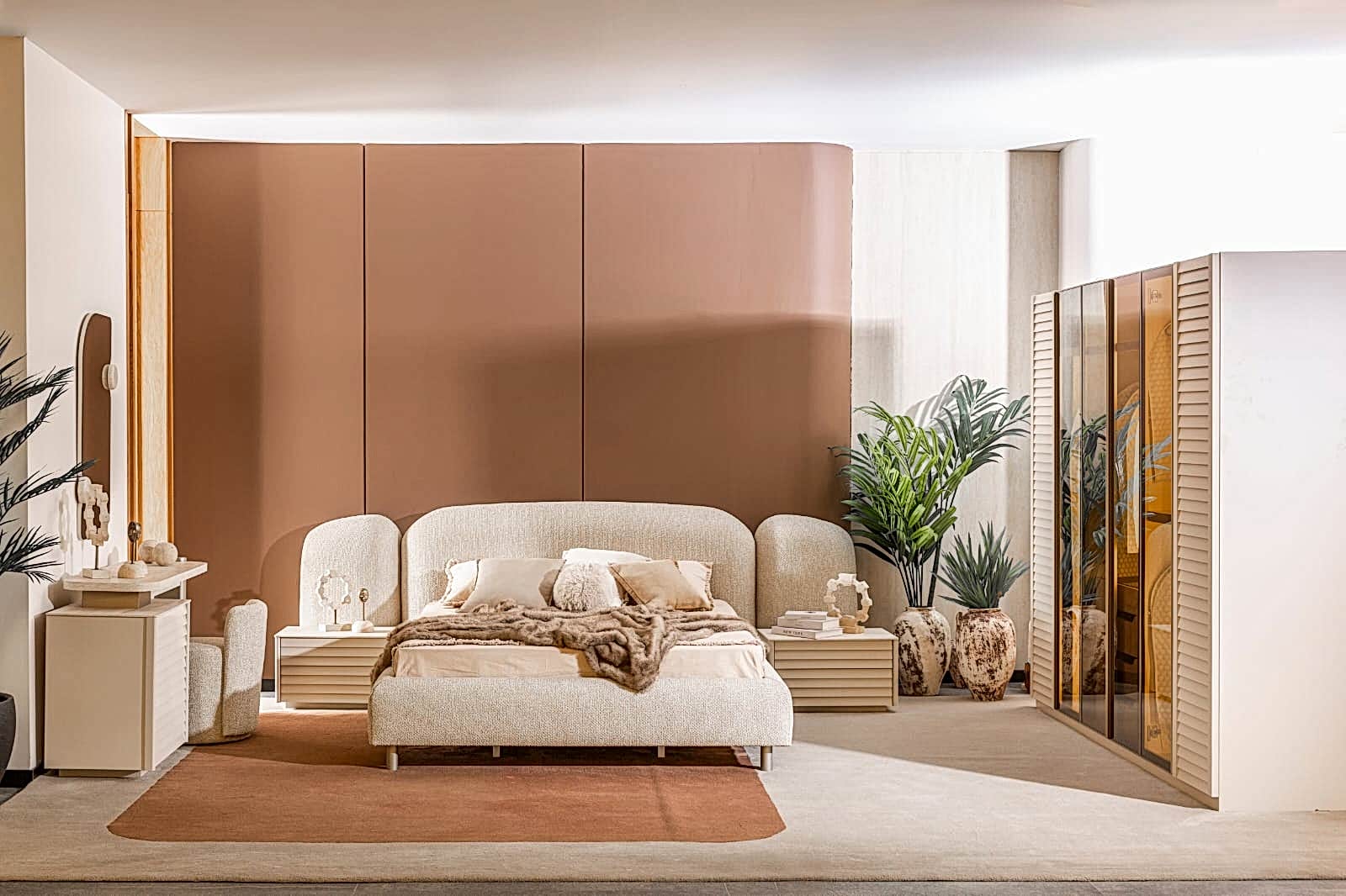 YATAK ODASI TAKIMI: Karyola, karyola başucu, 2 adet komodin, gardorop, şifonyer, şifonyer aynasından oluşmaktadır.