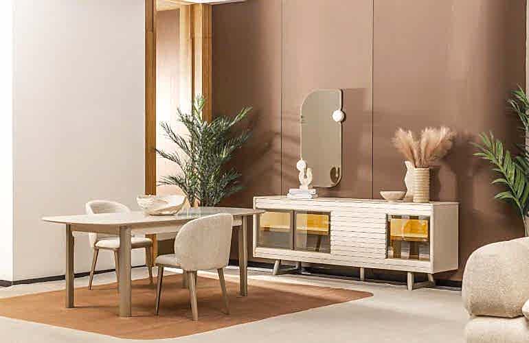 YEMEK ODASI TAKIMI: Konsol ,konsol aynası, yemek masası ve 4 adet isabelle sandalyelidir.