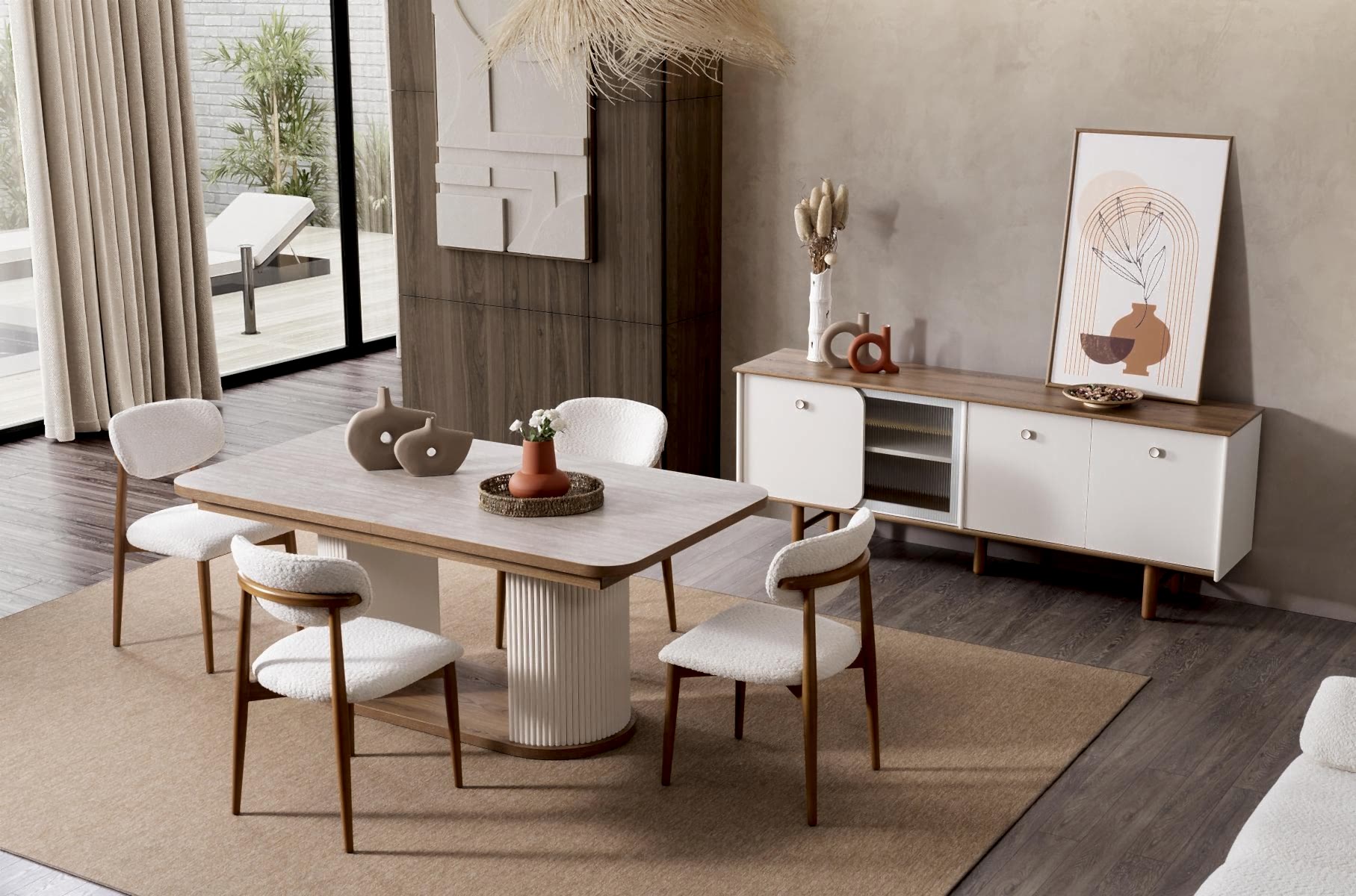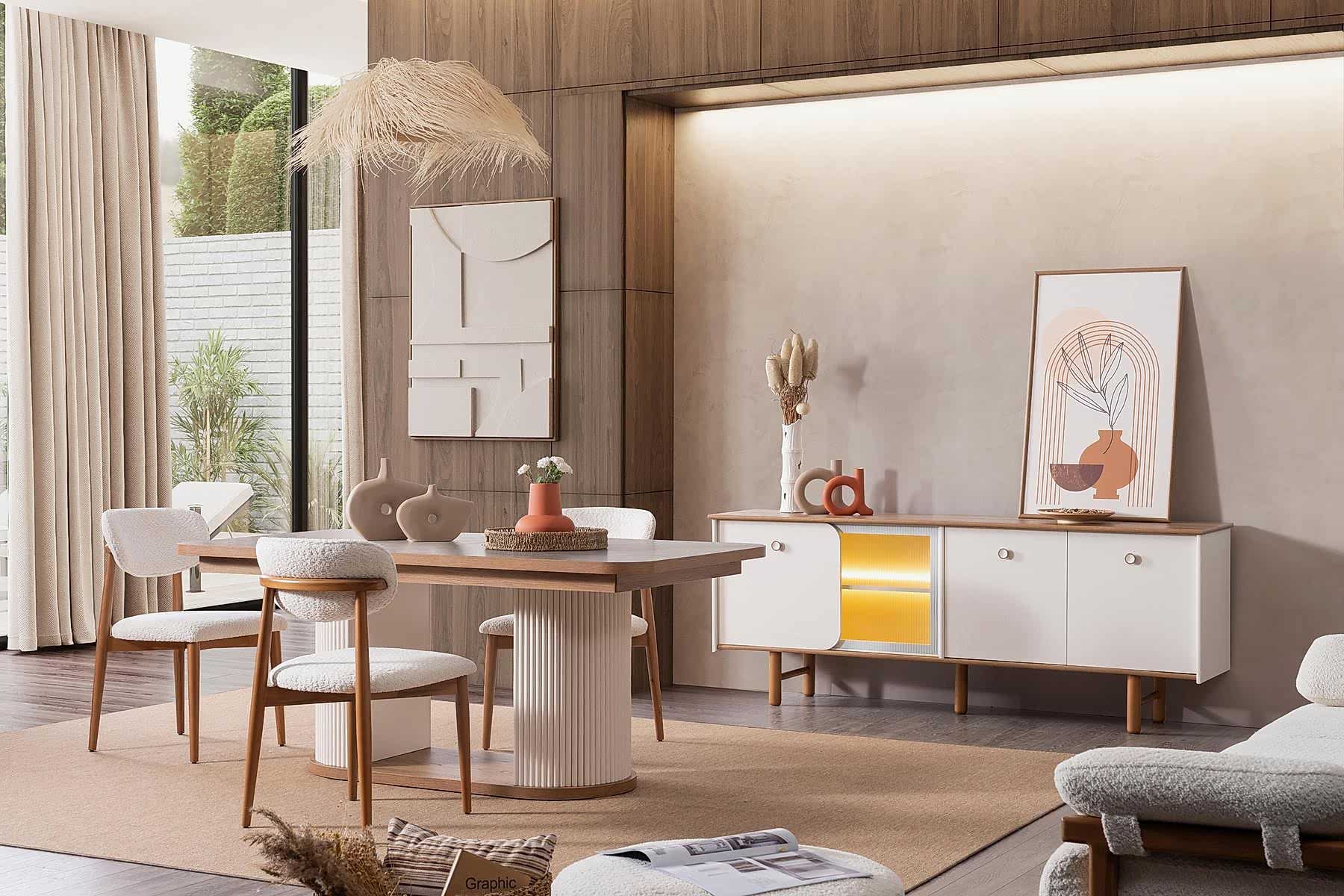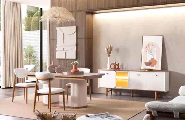YEMEK ODASI TAKIMI: Konsol ,konsol aynası, yemek masası ve 4 adet polo sandalyelidir.