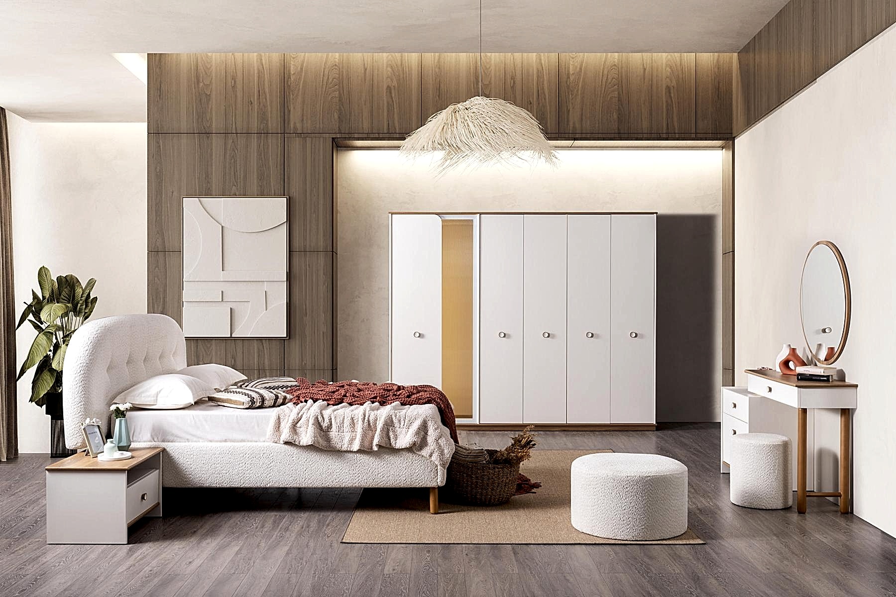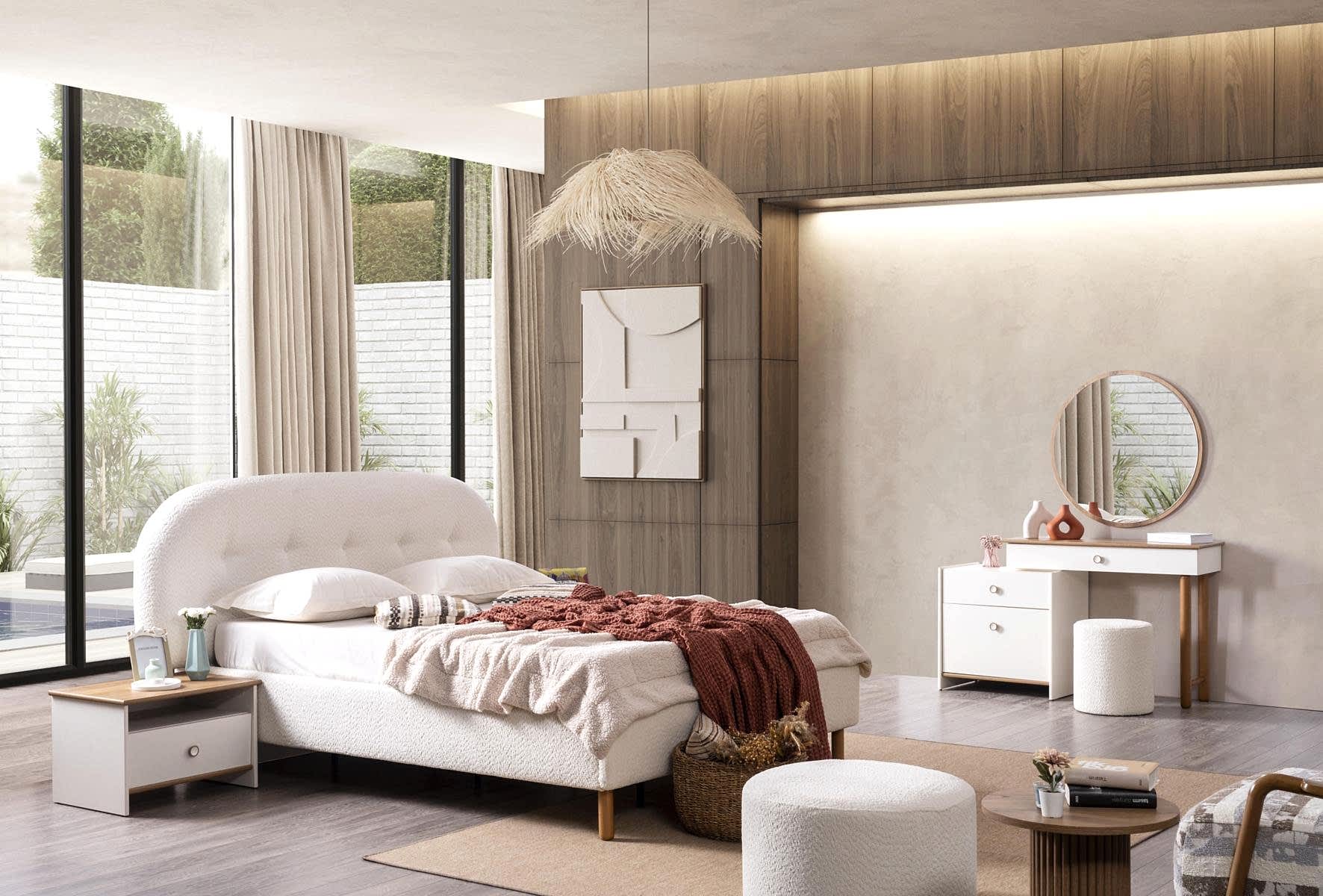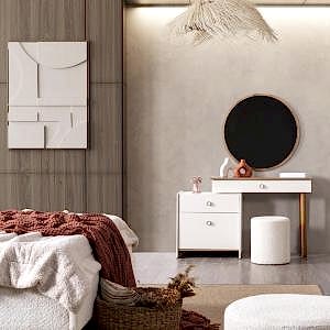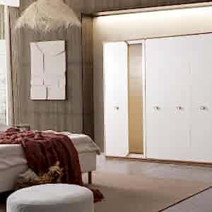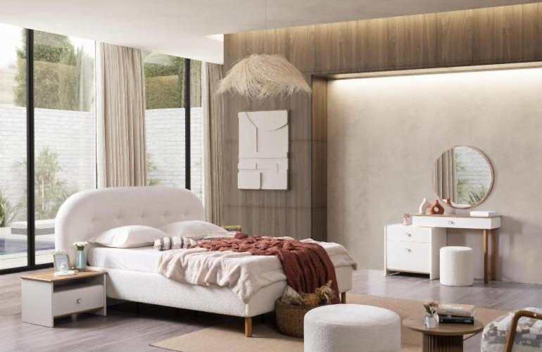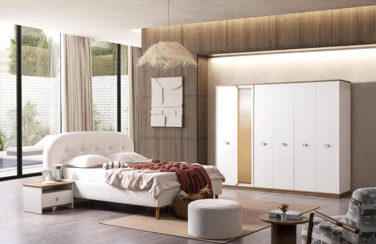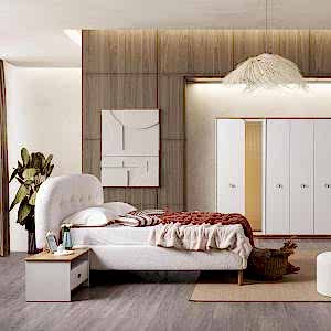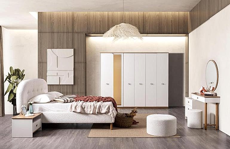 YATAK ODASI TAKIMI: Karyola, karyola başucu, 2 adet komodin, gardorop, şifonyer, şifonyer aynasından oluşmaktadır.